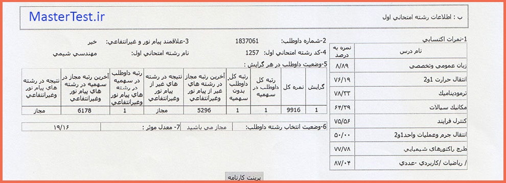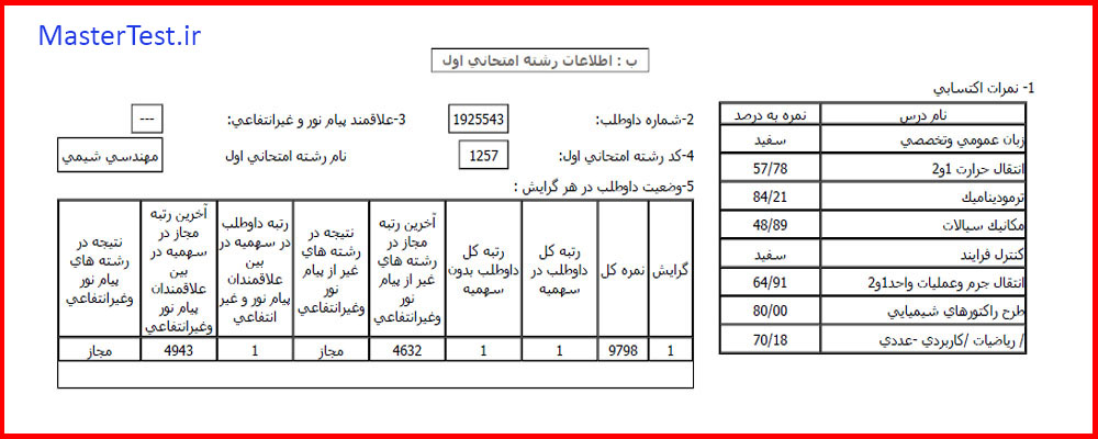 کارنامههای رتبههای برتر آزمون کارشناسی ارشد رشته مهندسی شیمی جهت اطلاع کاربران عزیز تقدیم میگردد: