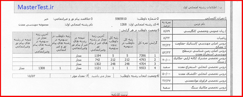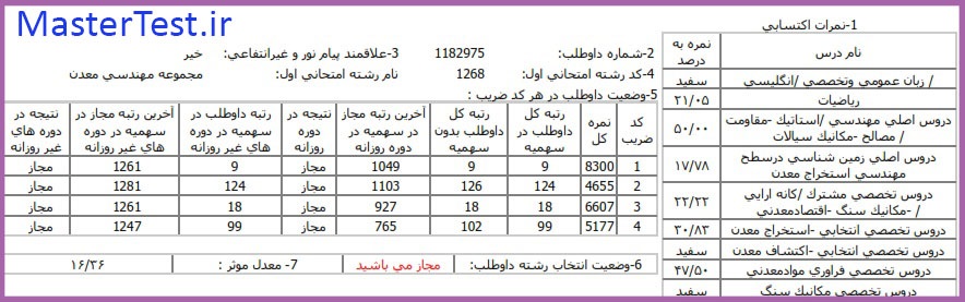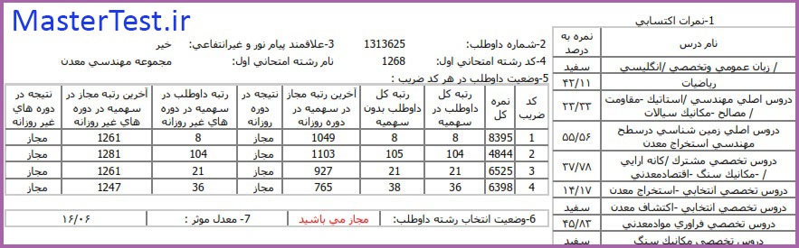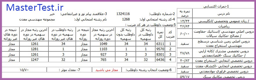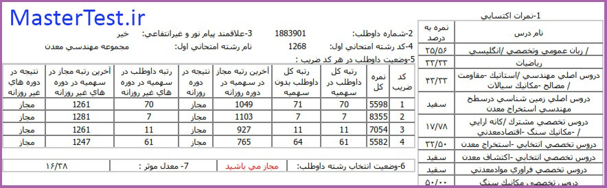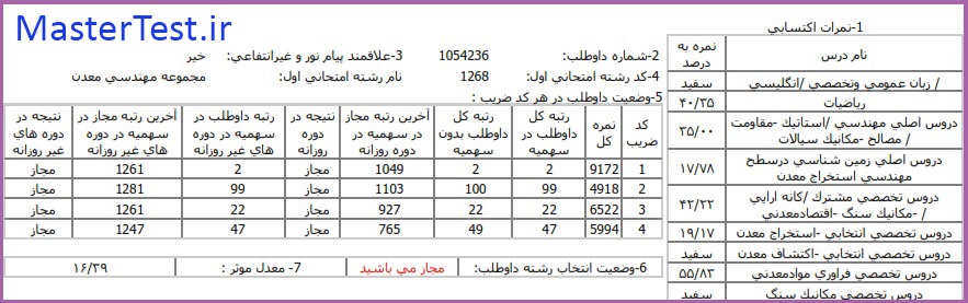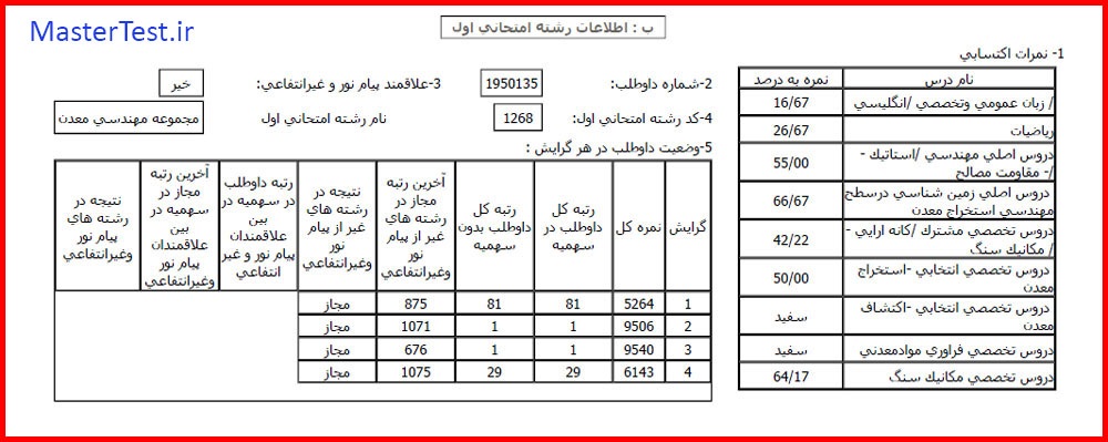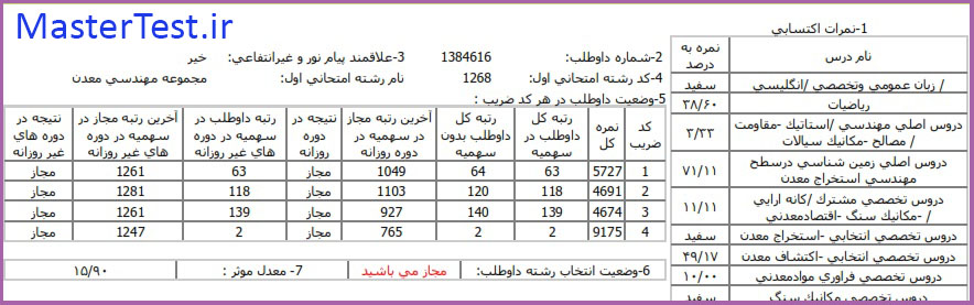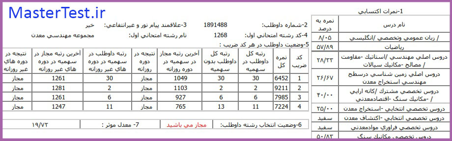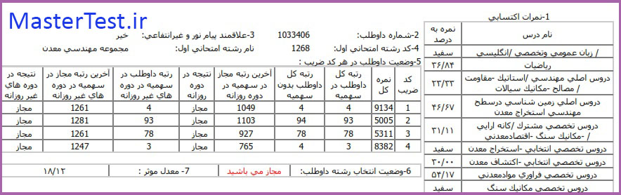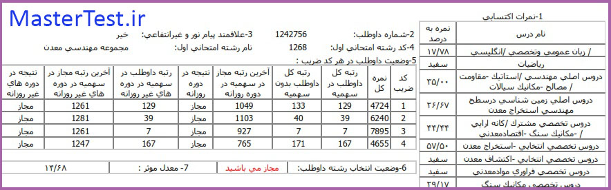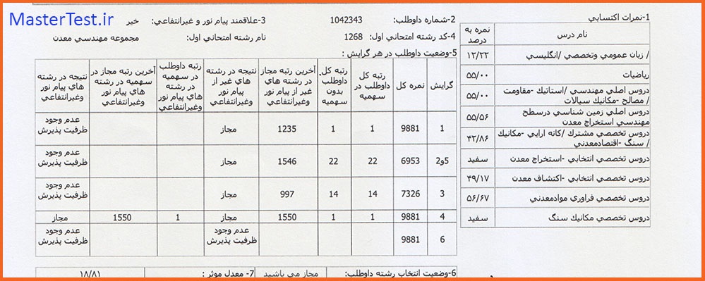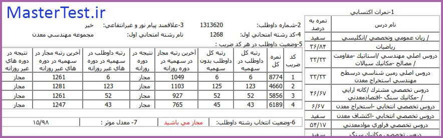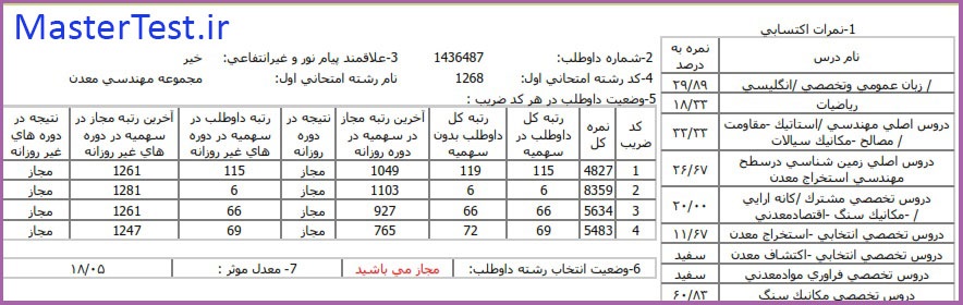 کارنامههای رتبههای برتر آزمون کارشناسی ارشد رشته مهندسی معدن جهت اطلاع کاربران عزیز تقدیم میگردد: