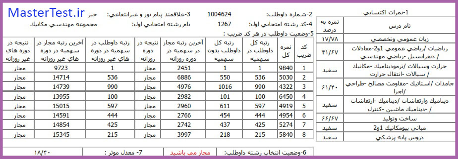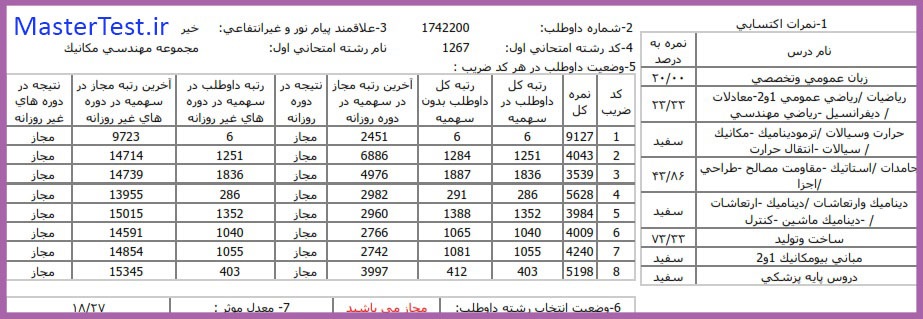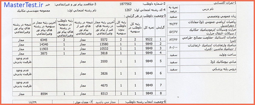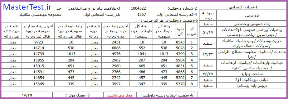 کارنامههای رتبههای برتر آزمون کارشناسی ارشد رشته مهندسی مکانیک جهت اطلاع کاربران عزیز تقدیم میگردد: