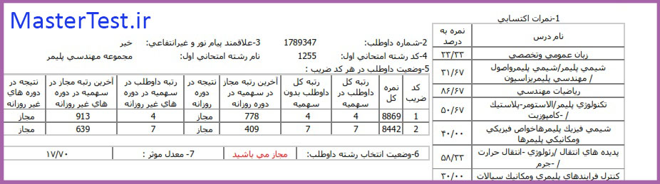 کارنامههای رتبههای برتر آزمون کارشناسی ارشد رشته مهندسی پلیمر جهت اطلاع کاربران عزیز تقدیم میگردد: