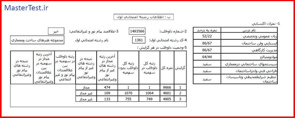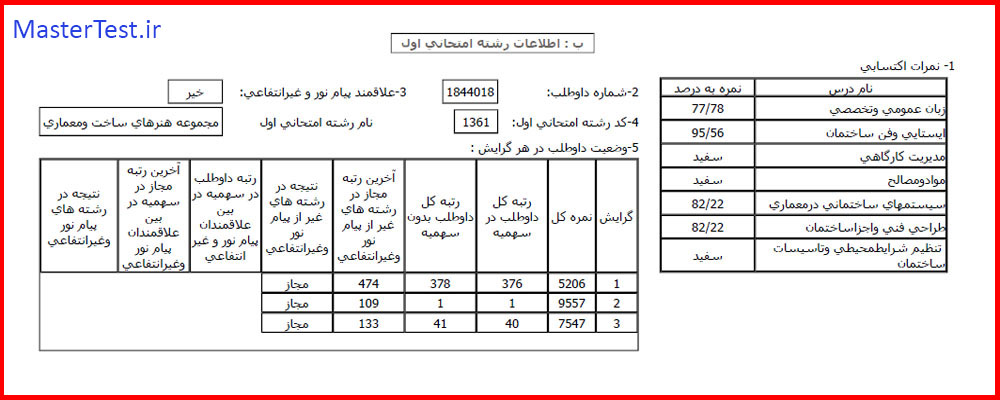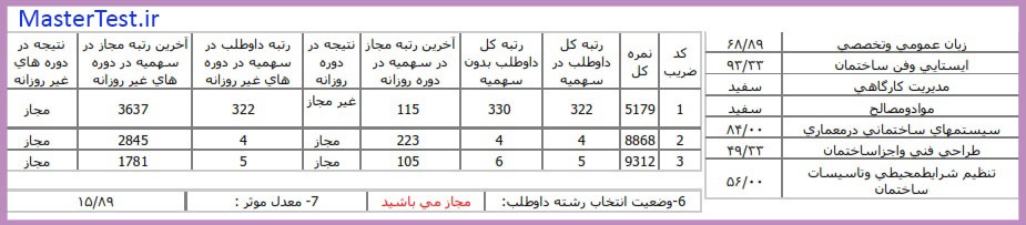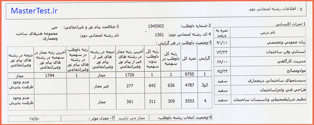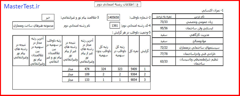 کارنامههای رتبههای برتر آزمون کارشناسی ارشد رشته هنرهای ساخت و معماری جهت اطلاع کاربران عزیز تقدیم میگردد: