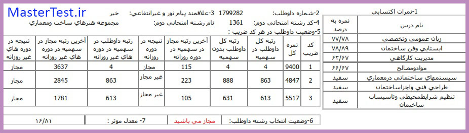 کارنامه رتبههای برتر کنکور کارشناسی ارشد رشته هنرهای ساخت و معماری کد ۱۳۶۱