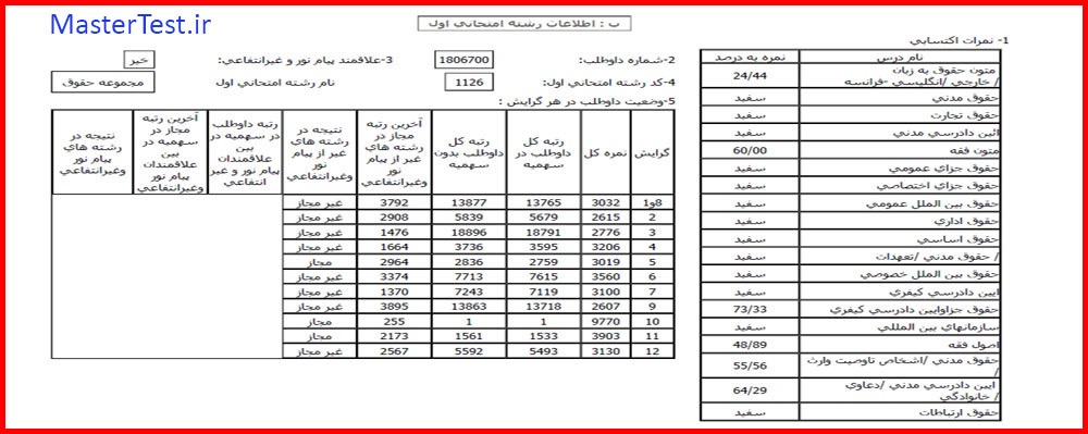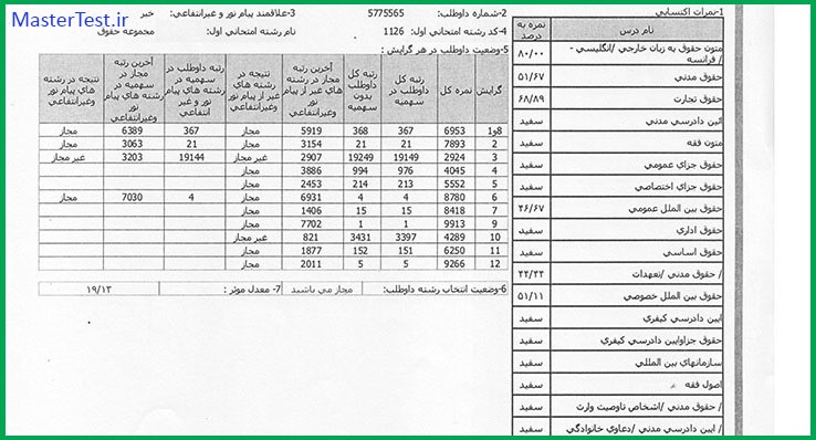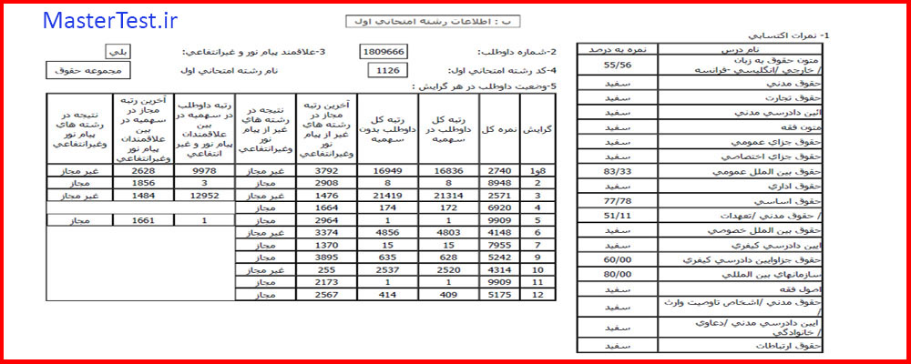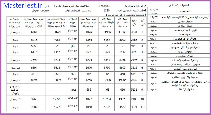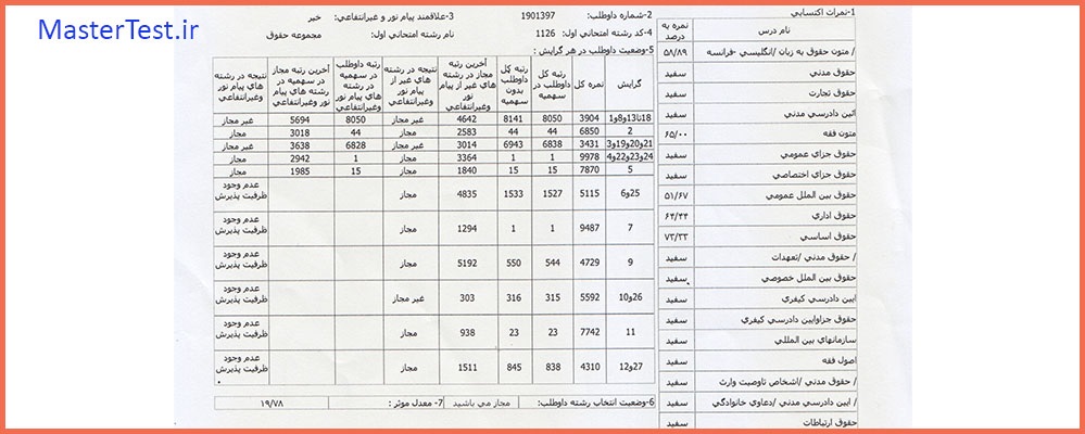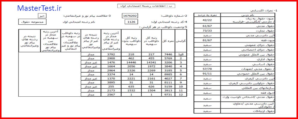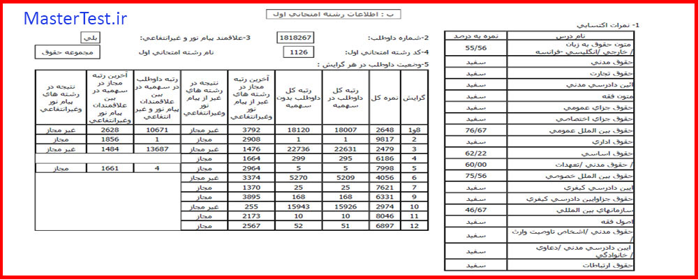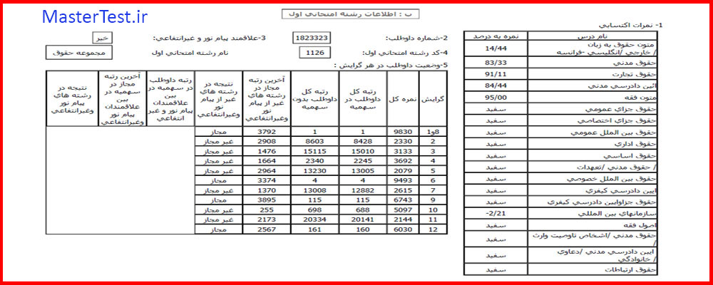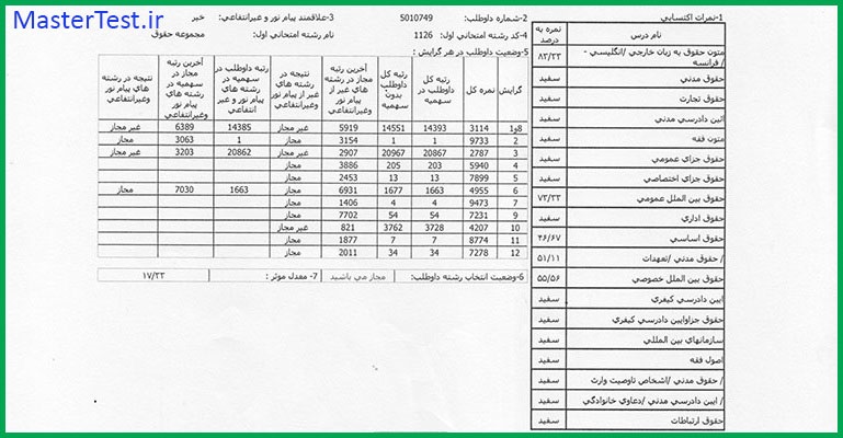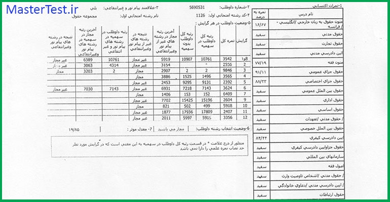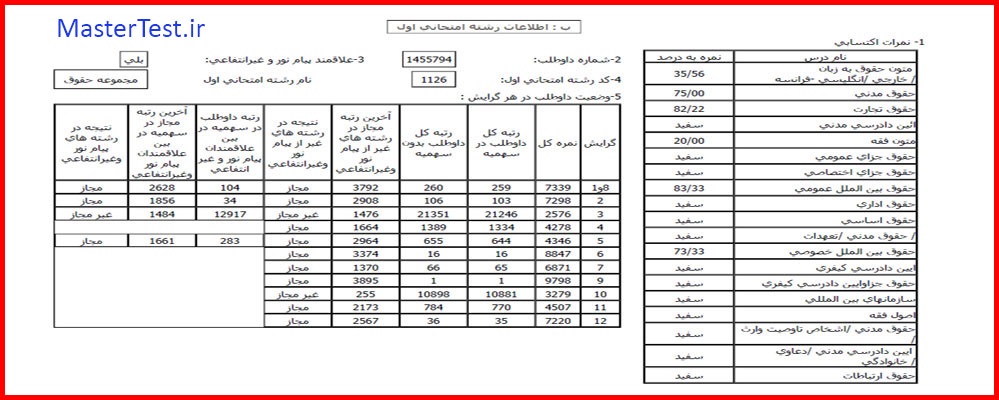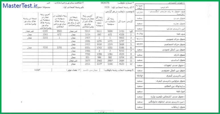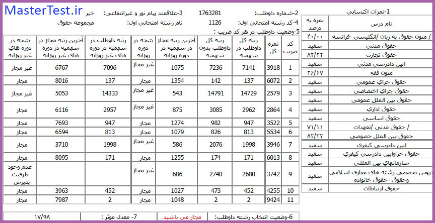 کارنامههای رتبههای برتر آزمون کارشناسی ارشد رشته حقوق جهت اطلاع کاربران عزیز تقدیم میگردد: