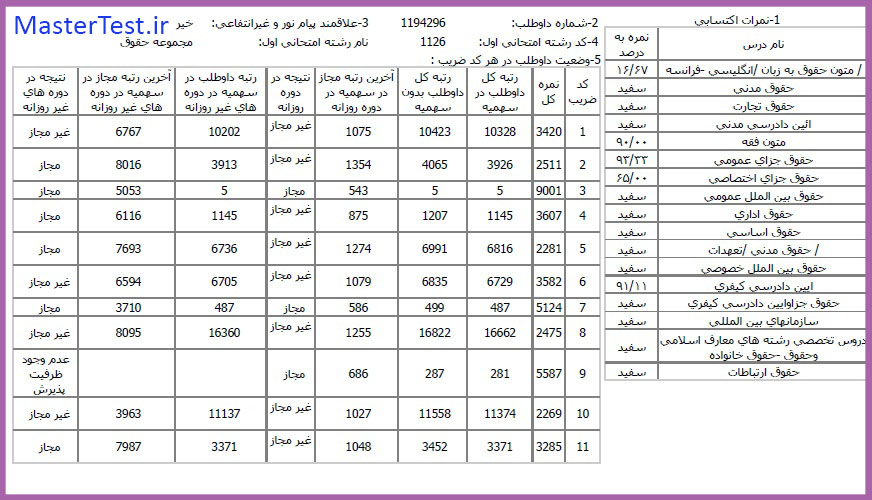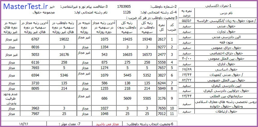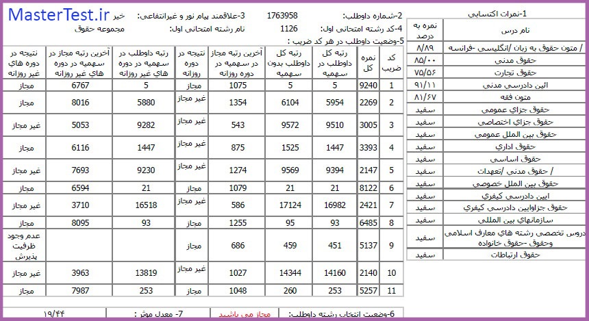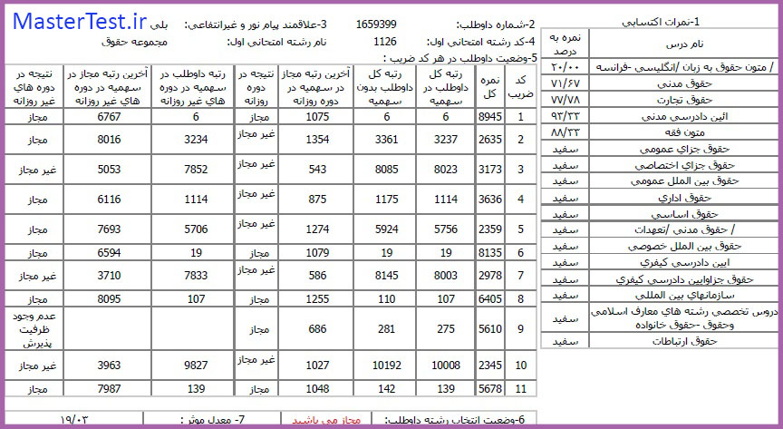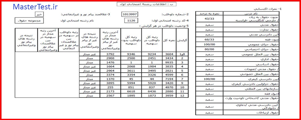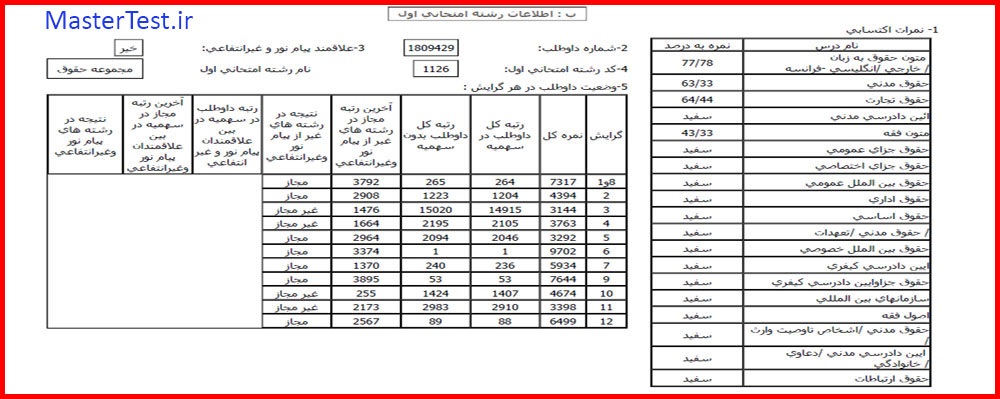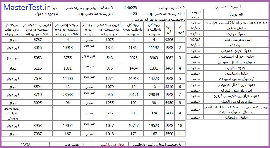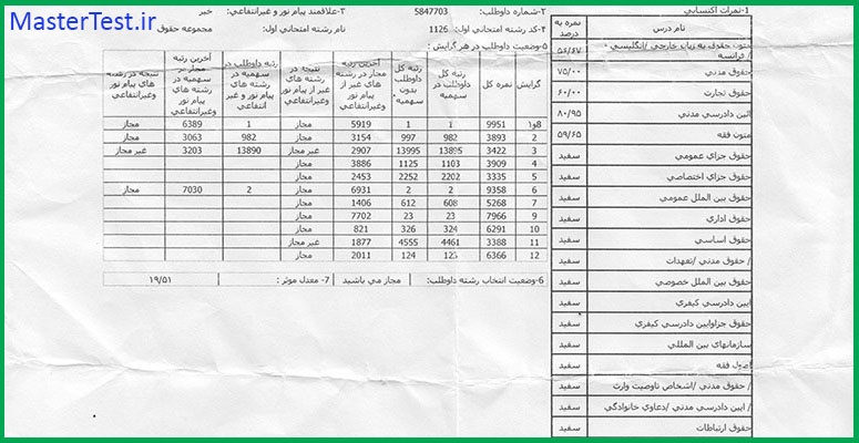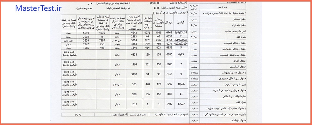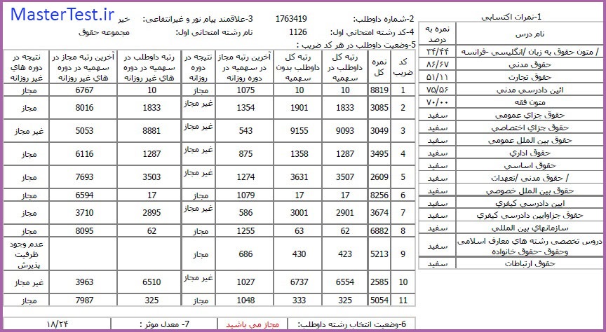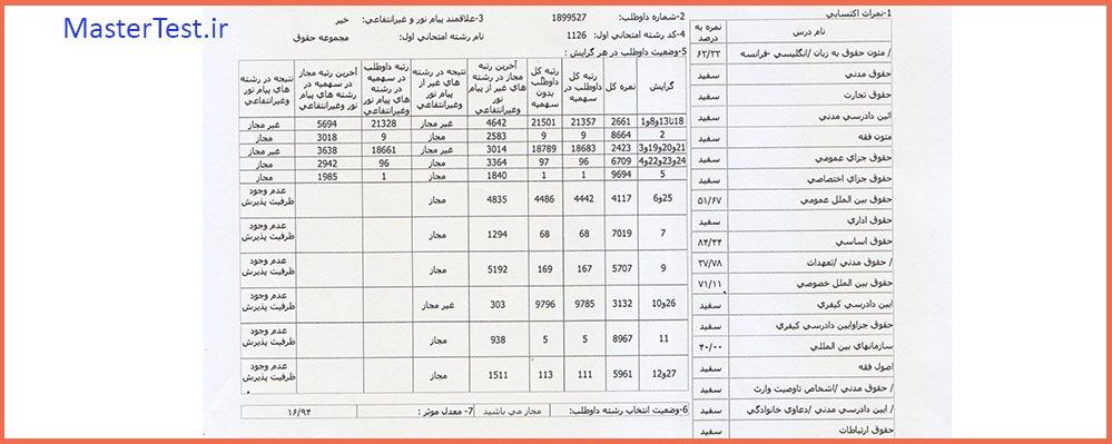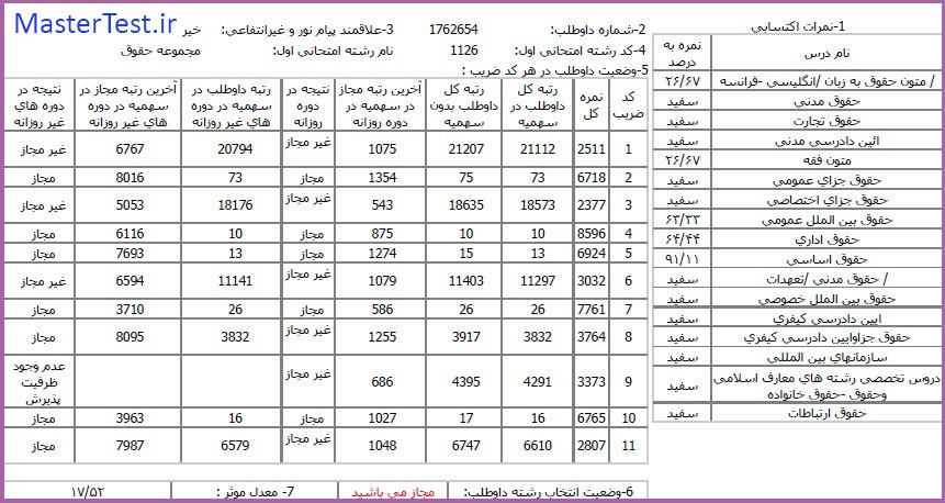 کارنامههای رتبههای برتر آزمون کارشناسی ارشد رشته حقوق جهت اطلاع کاربران عزیز تقدیم میگردد: