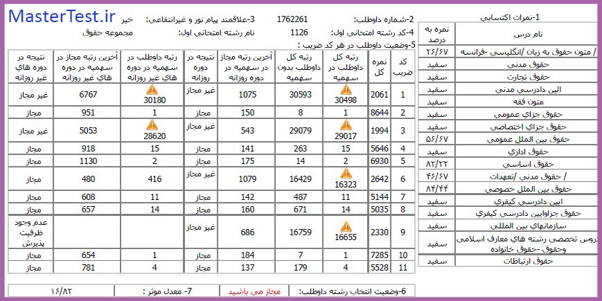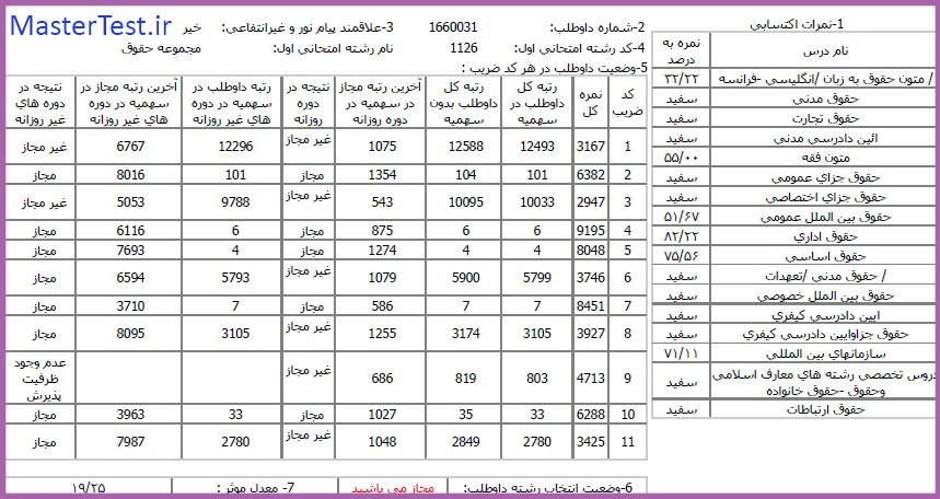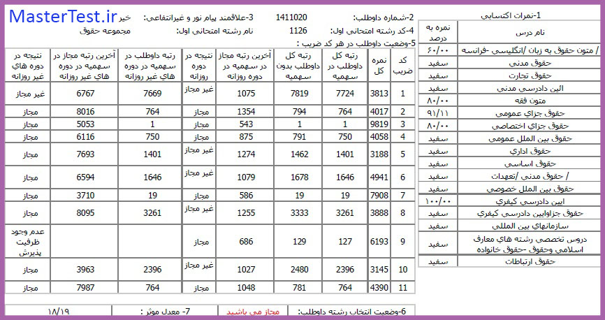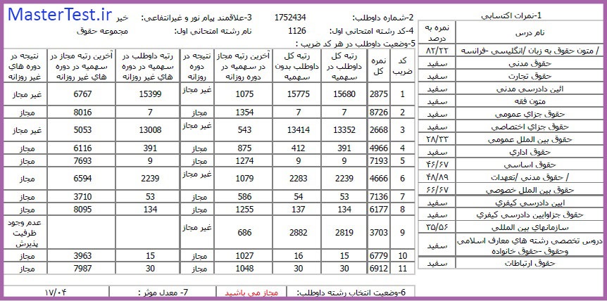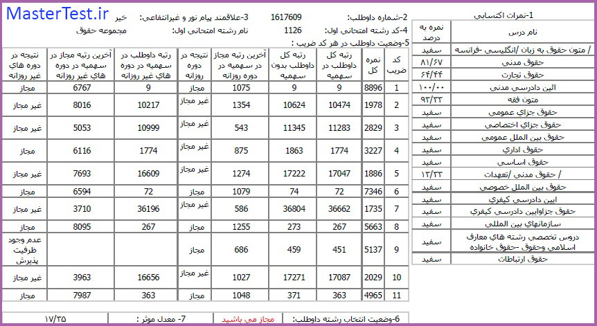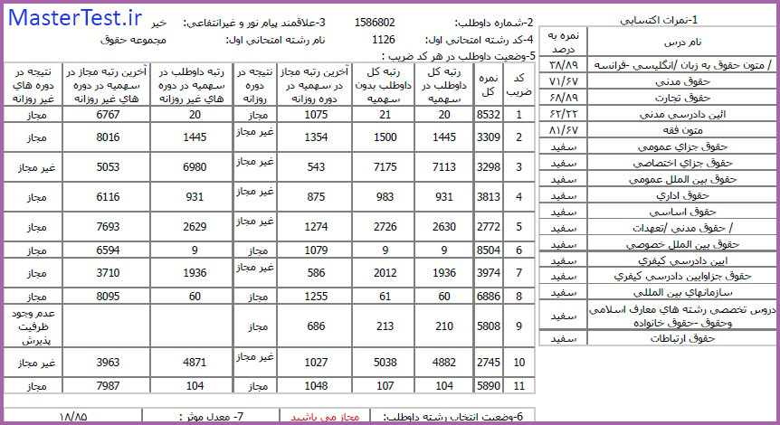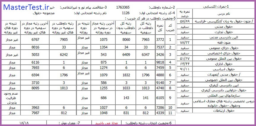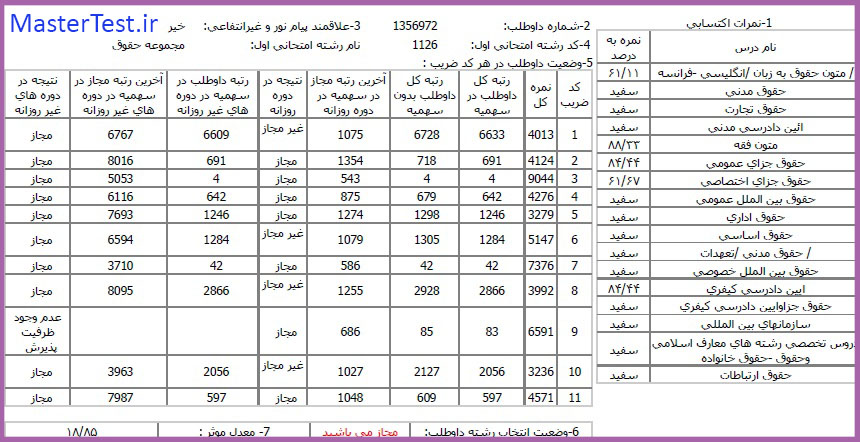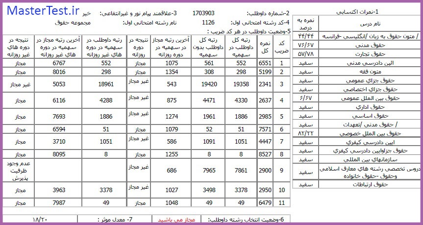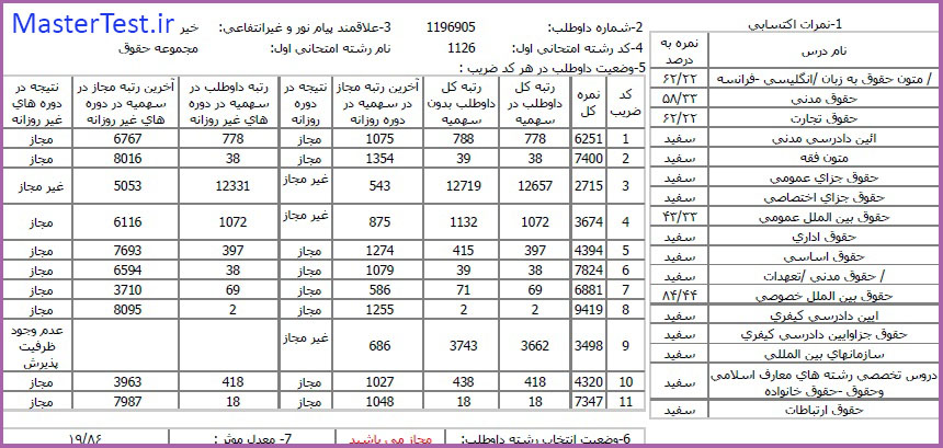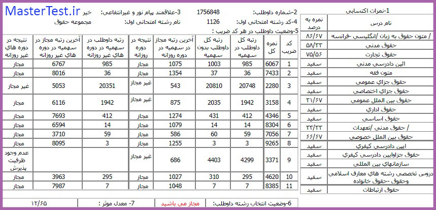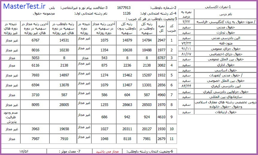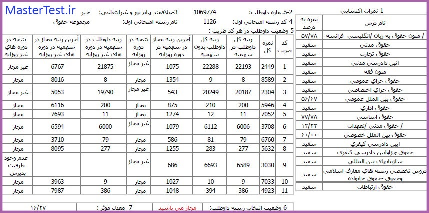 کارنامههای رتبههای برتر آزمون کارشناسی ارشد رشته حقوق جهت اطلاع کاربران عزیز تقدیم میگردد: