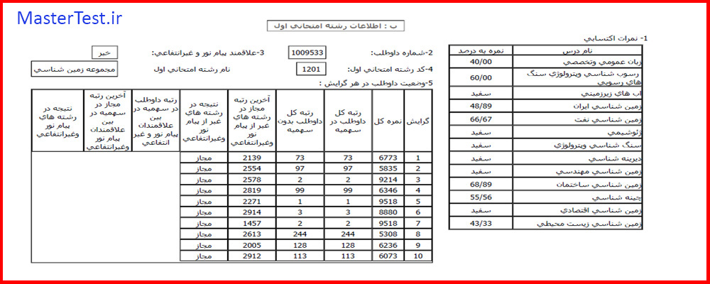 کارنامههای رتبههای برتر آزمون کارشناسی ارشد رشته علوم زمین جهت اطلاع کاربران عزیز تقدیم میگردد: