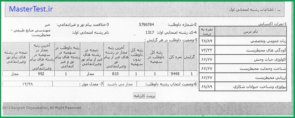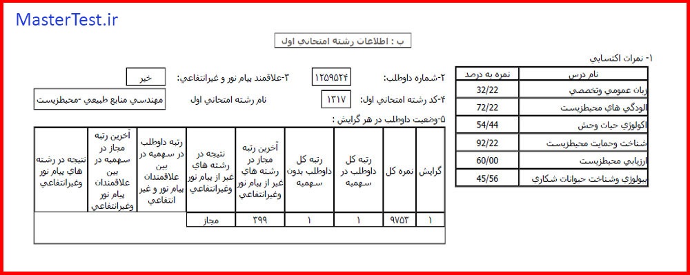 کارنامههای رتبههای برتر آزمون کارشناسی ارشد رشته مهندسی منابع طبیعی-محیط زیست جهت اطلاع کاربران عزیز تقدیم میگردد: