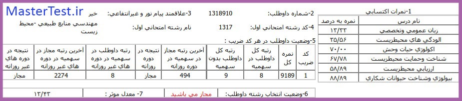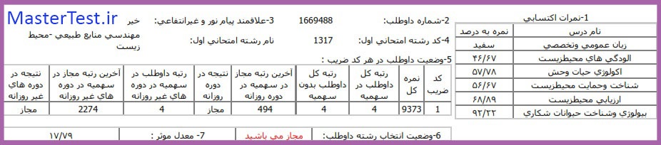 کارنامه رتبههای برتر کنکور کارشناسی ارشد رشته مهندسی منابع طبیعی-محیط زیست کد ۱۳۱۷