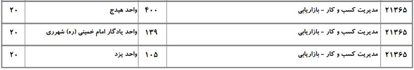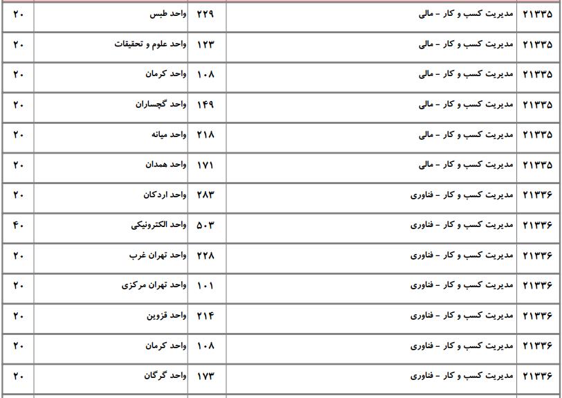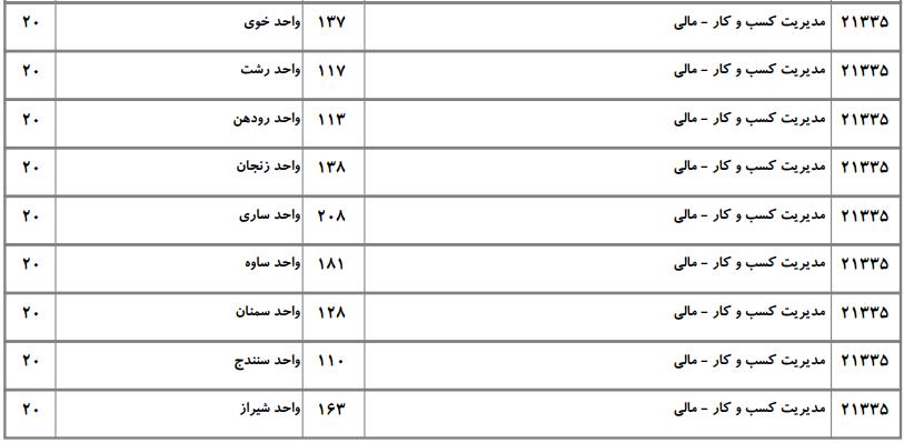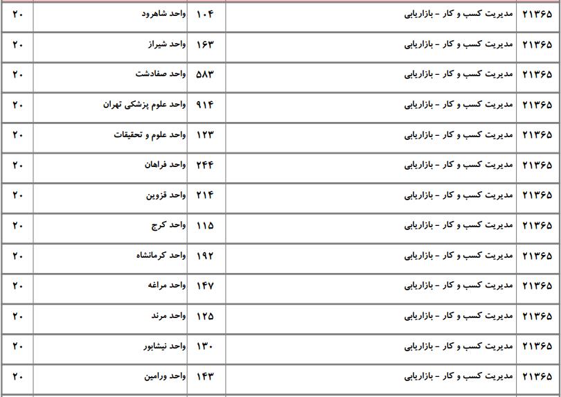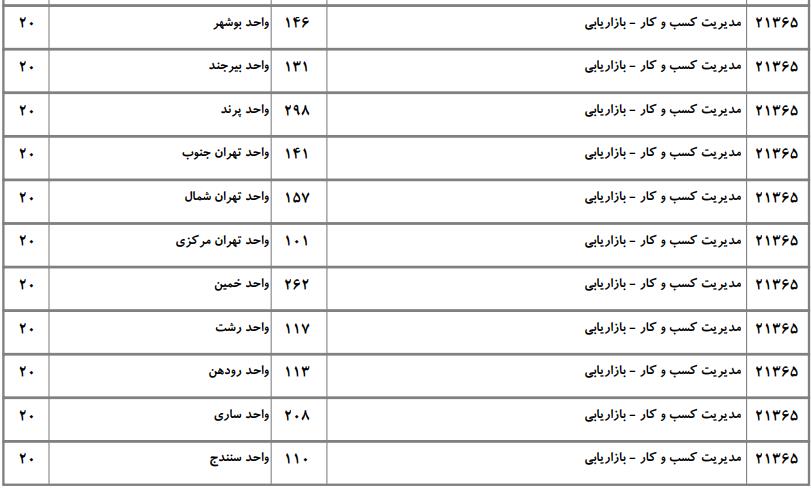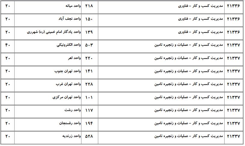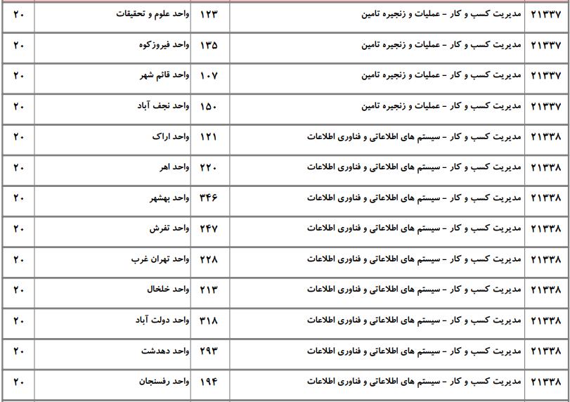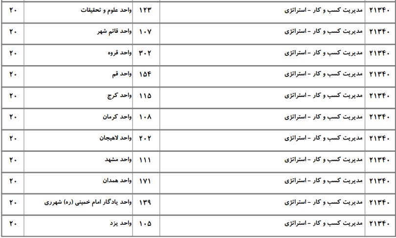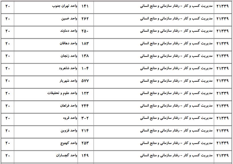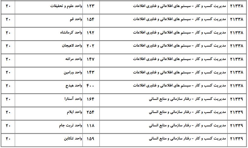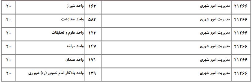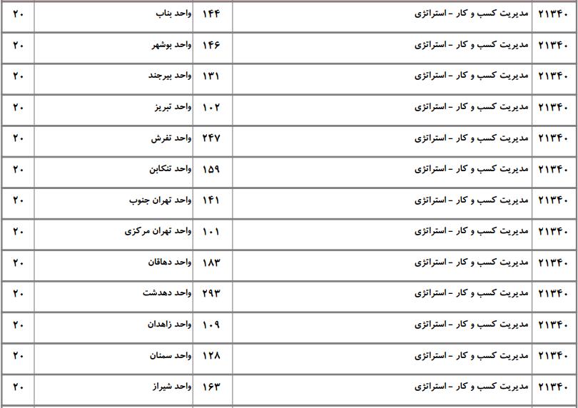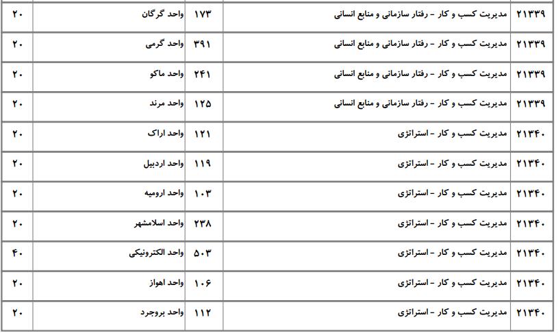 فهرست واحدهای دانشگاهی دارای پذیرش و ظرفیت کارشناسی ارشد رشته مدیریت کسب و کار و امور شهری مطابق دفترچه انتخاب رشته کارشناسی ارشد دانشگاه آزاد به شرح زیر است: