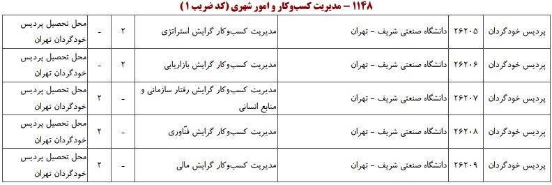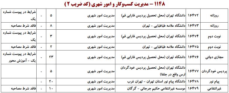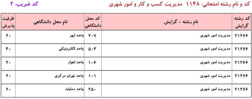 ظرفیت کنکور کارشناسی ارشد رشته مدیریت کسب و کار و امور شهری (کد ۱۱۴۸)