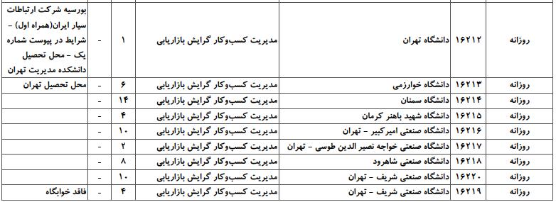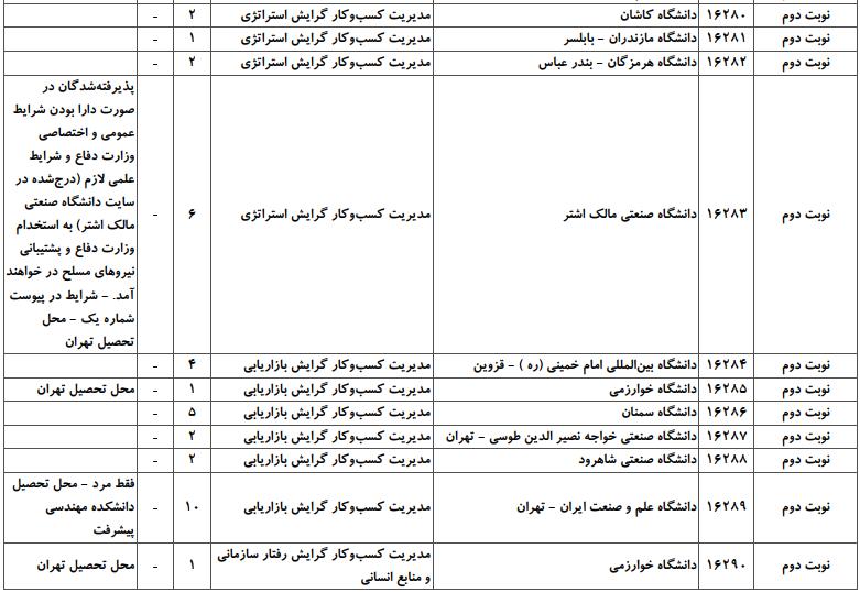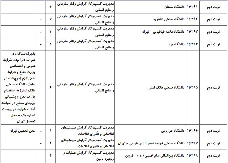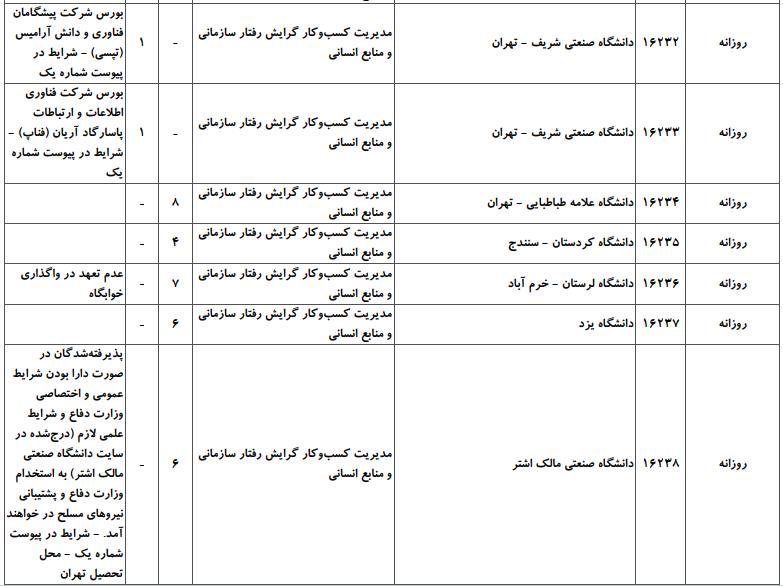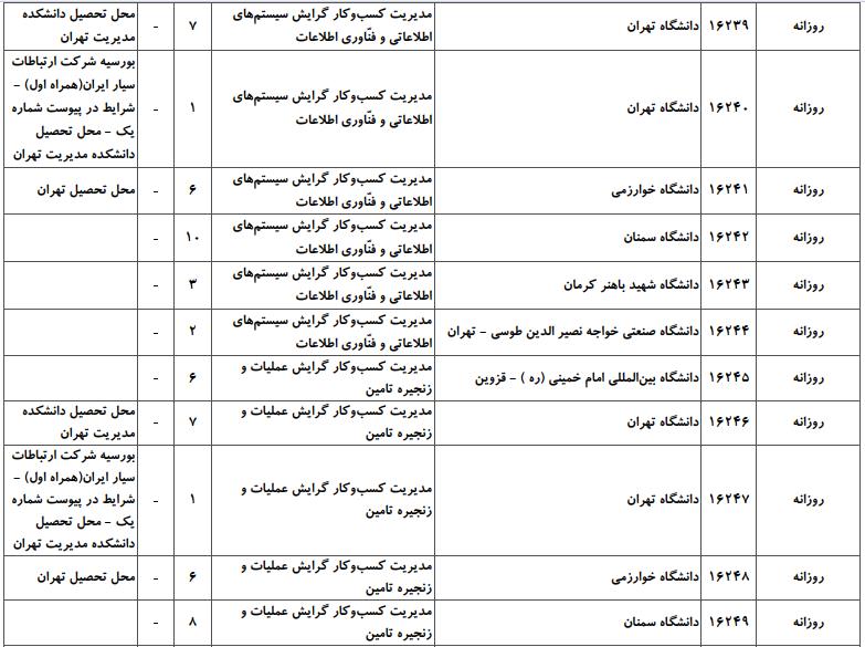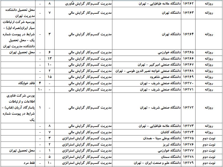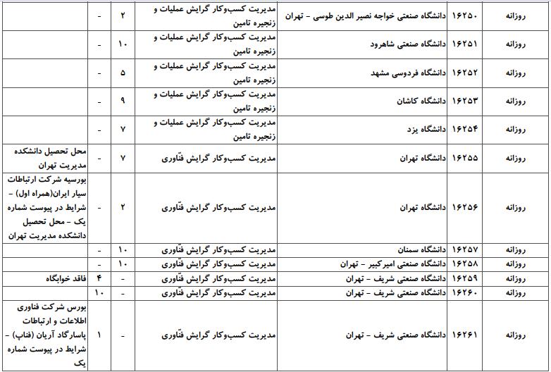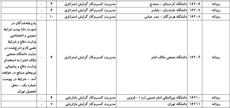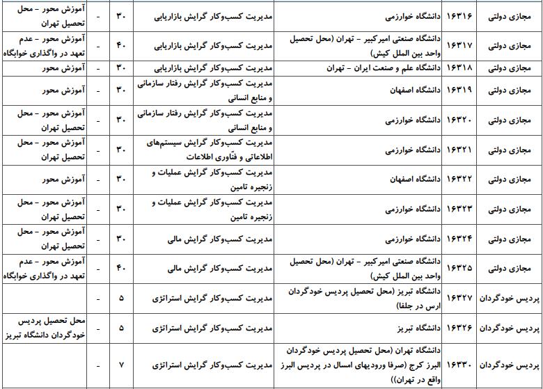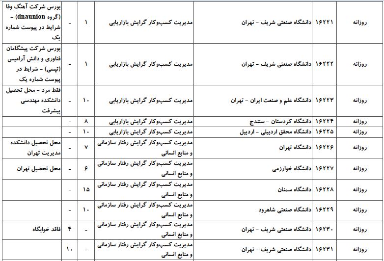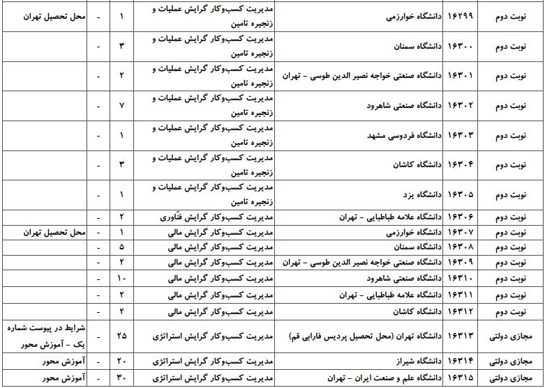 ظرفیت پذیرش کارشناسی ارشد رشته مدیریت کسب و کار و امور شهری در دانشگاه های سراسری