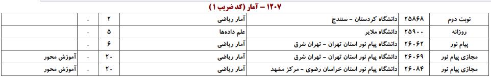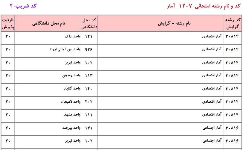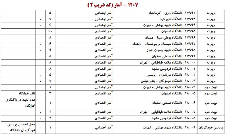 ظرفیت کنکور کارشناسی ارشد رشته آمار (کد ۱۲۰۷)