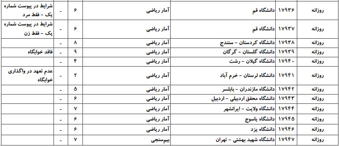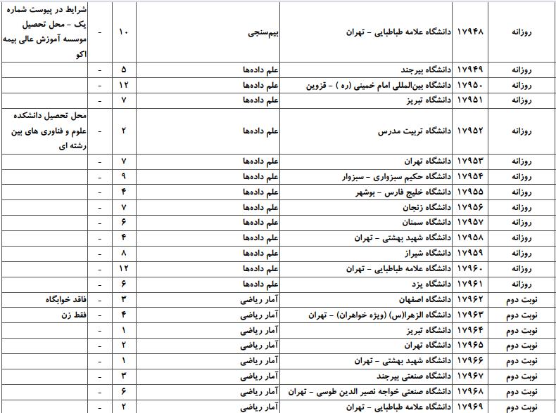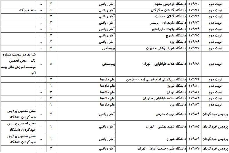 ظرفیت پذیرش کارشناسی ارشد رشته آمار در دانشگاه های سراسری
