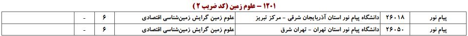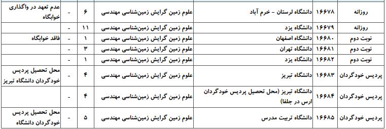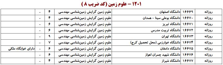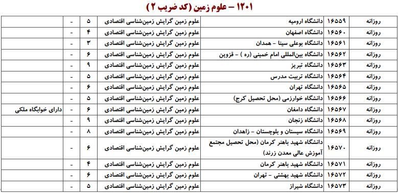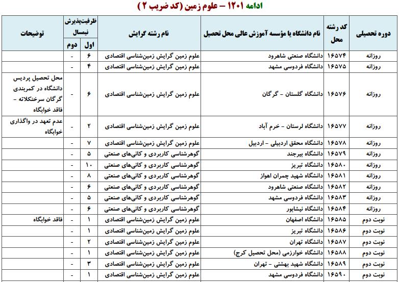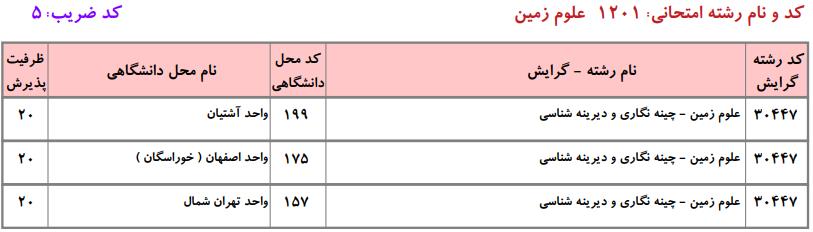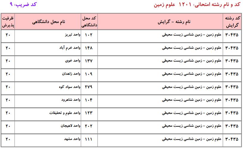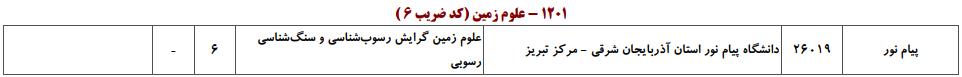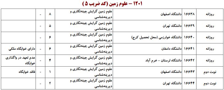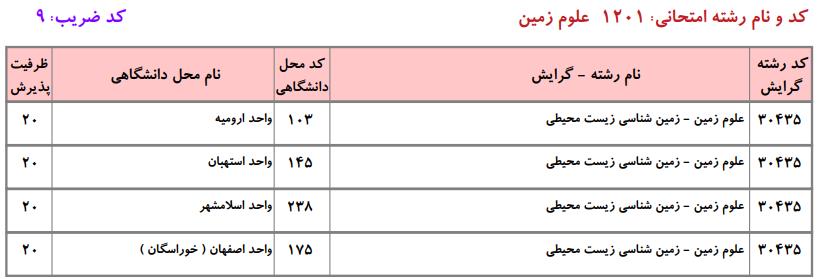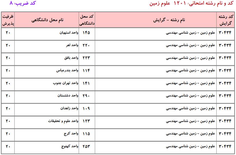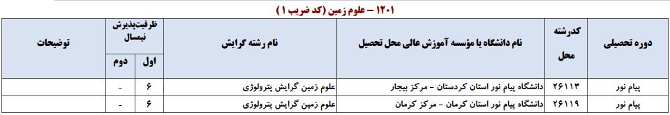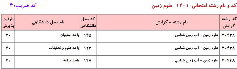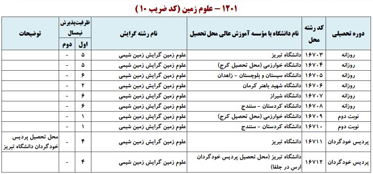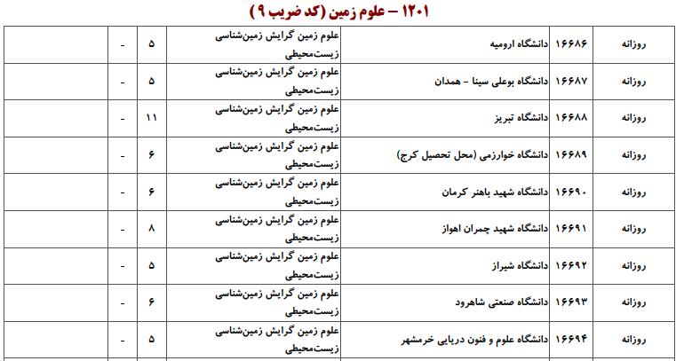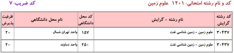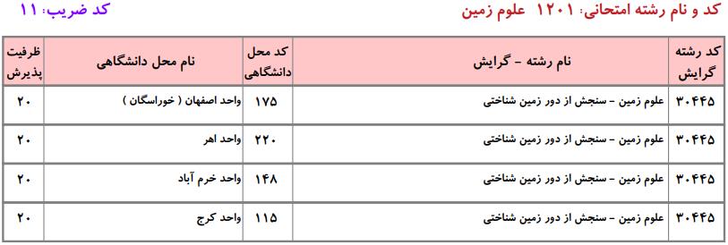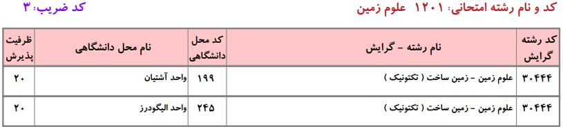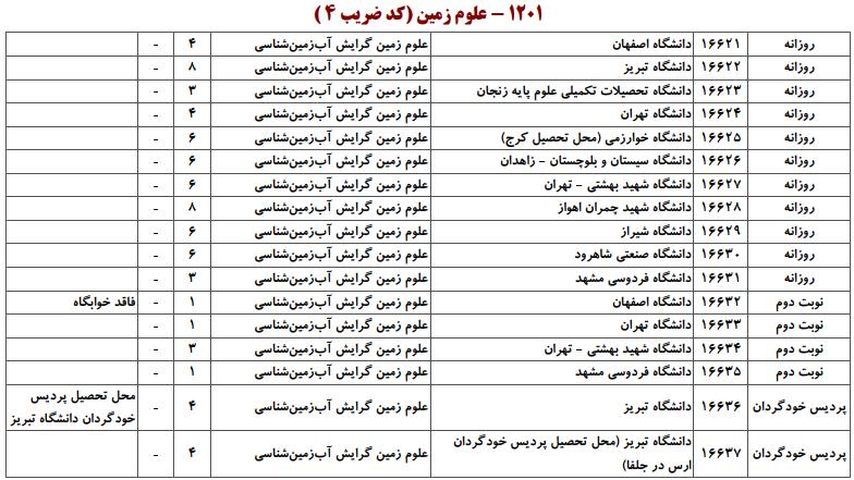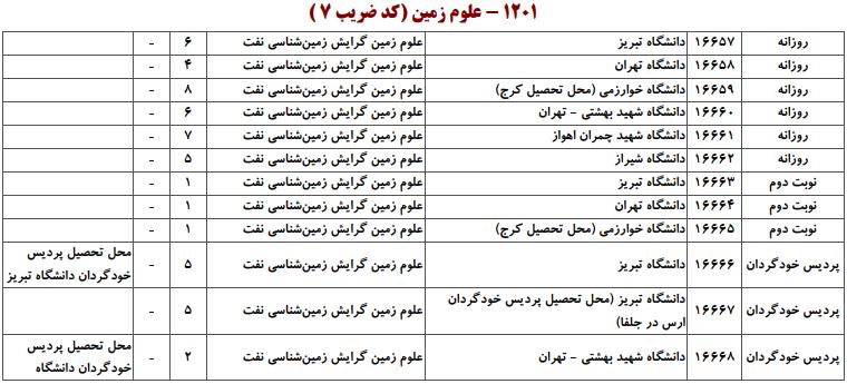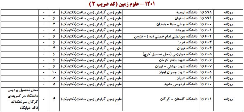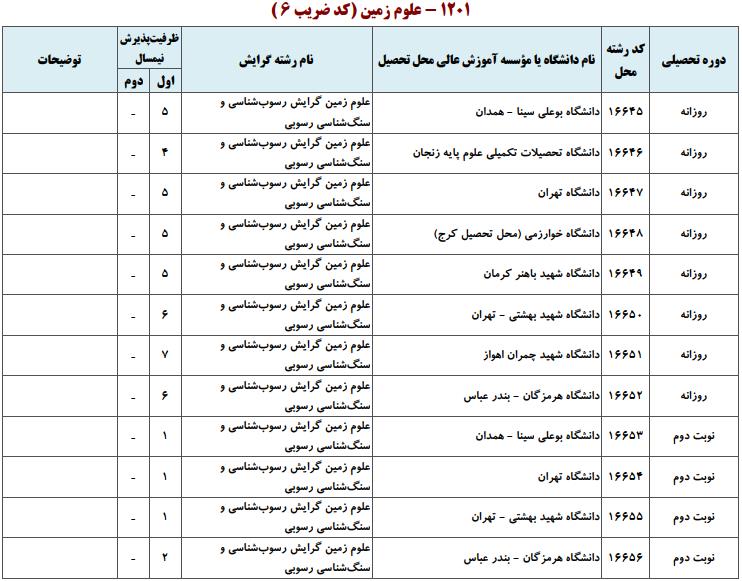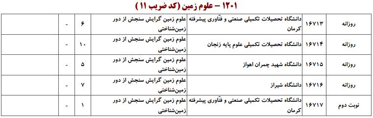 ظرفیت کنکور کارشناسی ارشد رشته علوم زمین (کد ۱۲۰۱)