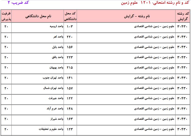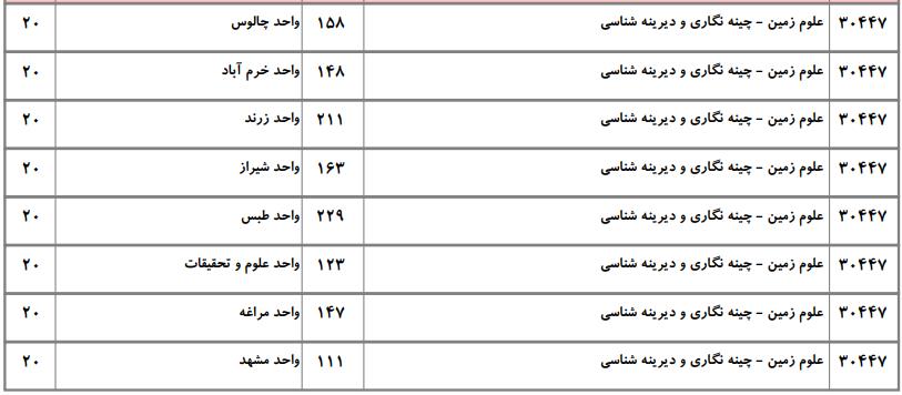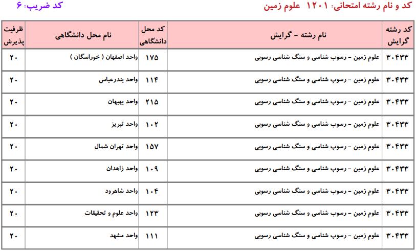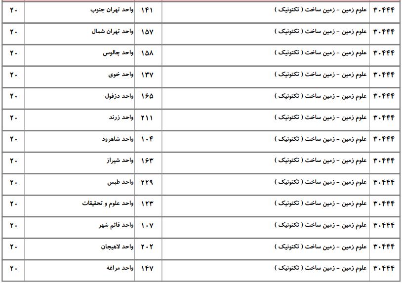 فهرست واحدهای دانشگاهی دارای پذیرش و ظرفیت کارشناسی ارشد رشته علوم زمین مطابق دفترچه انتخاب رشته کارشناسی ارشد دانشگاه آزاد به شرح زیر است: