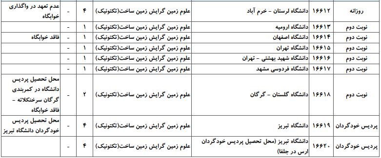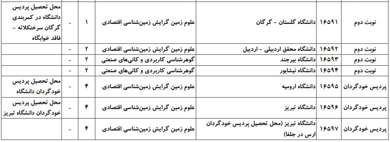 جهت اطلاع داوطلبان گرامی آزمون کارشناسی ارشد، در ادامه فهرست دانشگاههای دولتی دارای پذیرش و ظرفیت پذیرش گرایشهای مختلف کارشناسی ارشد رشته علوم زمین ارائه شده است: