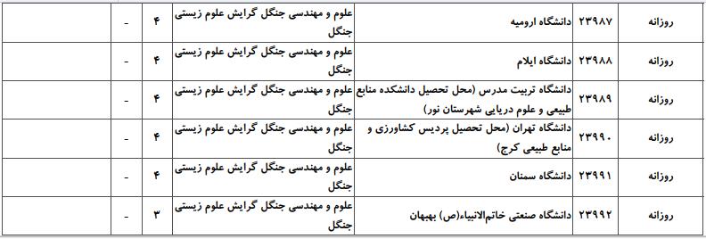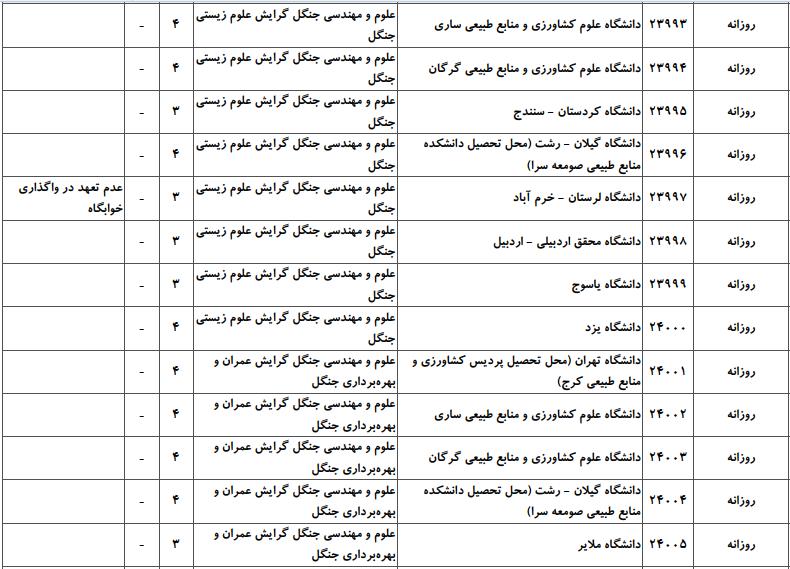 فهرست واحدهای دانشگاهی دارای پذیرش و ظرفیت کارشناسی ارشد رشته علوم و مهندسی جنگل مطابق دفترچه انتخاب رشته کارشناسی ارشد دانشگاه آزاد به شرح زیر است: