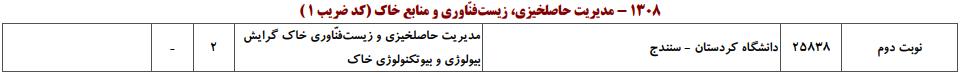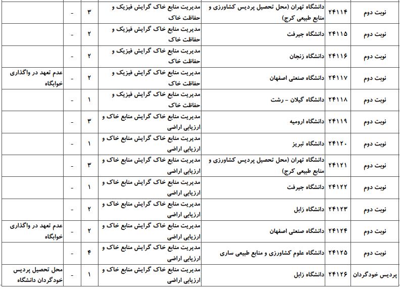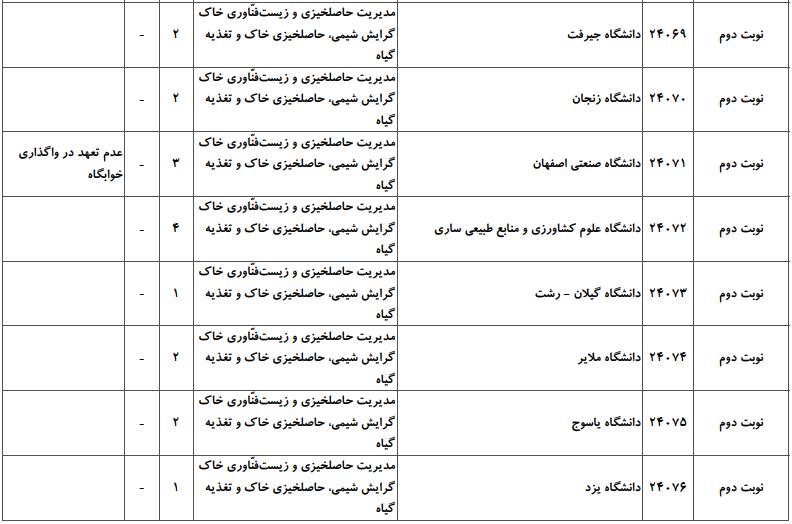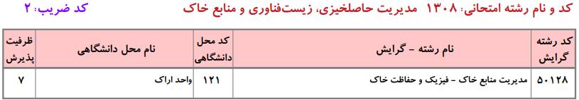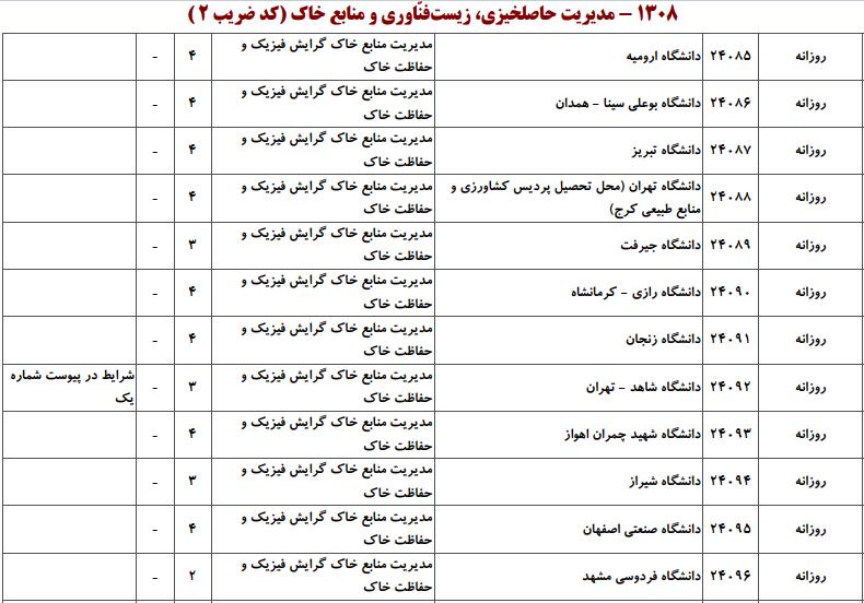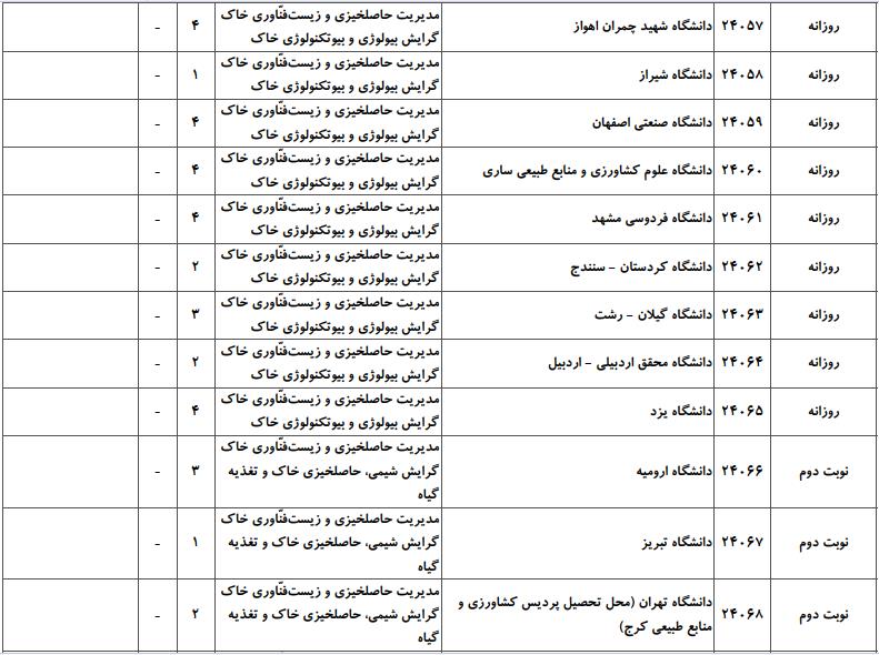 ظرفیت کنکور کارشناسی ارشد رشته مدیریت حاصلخیزی، زیستفناوری و منابع خاک (کد ۱۳۰۸)
