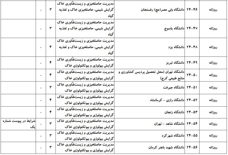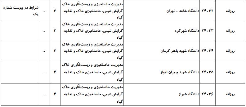 جهت اطلاع داوطلبان گرامی آزمون کارشناسی ارشد، در ادامه فهرست دانشگاههای دولتی دارای پذیرش و ظرفیت پذیرش گرایشهای مختلف کارشناسی ارشد رشته مدیریت حاصلخیزی، زیستفناوری و منابع خاک ارائه شده است: