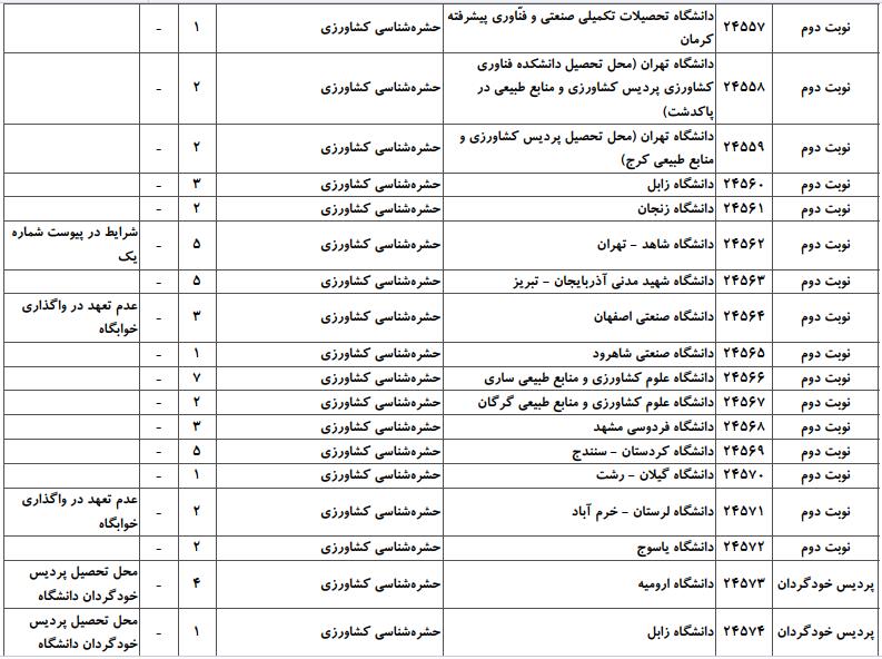 ظرفیت پذیرش کارشناسی ارشد رشته حشرهشناسی کشاورزی در دانشگاههای سراسری