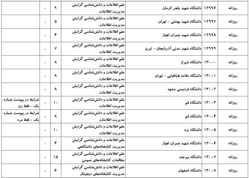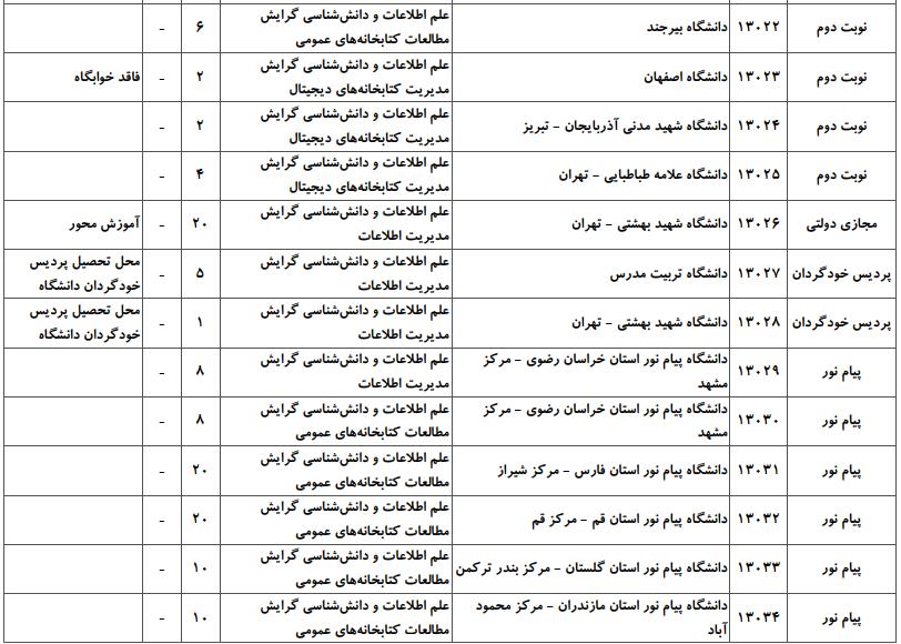 ظرفیت پذیرش کارشناسی ارشد رشته علم اطلاعات و دانششناسی در دانشگاه های سراسری