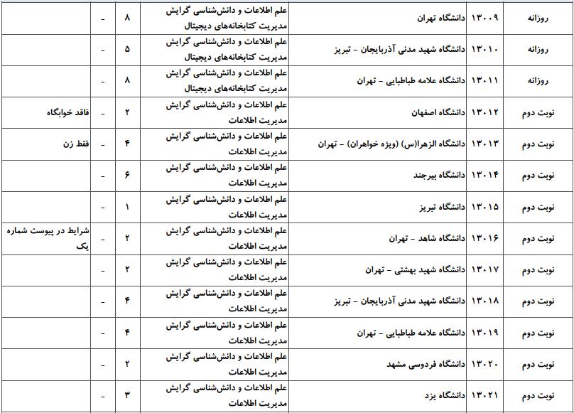 جهت اطلاع داوطلبان گرامی آزمون کارشناسی ارشد، در ادامه فهرست دانشگاههای دولتی دارای پذیرش و ظرفیت پذیرش گرایشهای مختلف کارشناسی ارشد رشته علم اطلاعات و دانششناسی ارائه شده است: