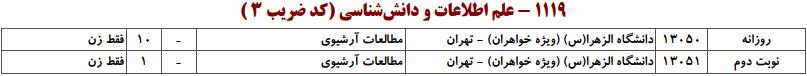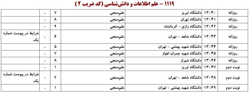 ظرفیت کنکور کارشناسی ارشد رشته علم اطلاعات و دانششناسی (کد ۱۱۱۹)