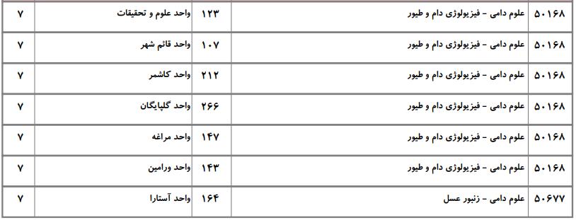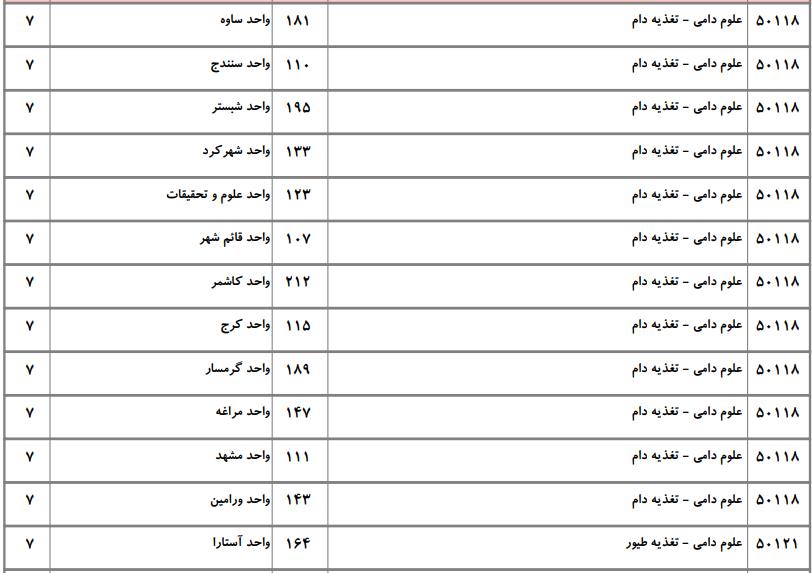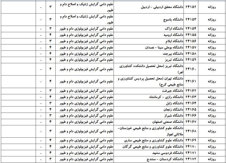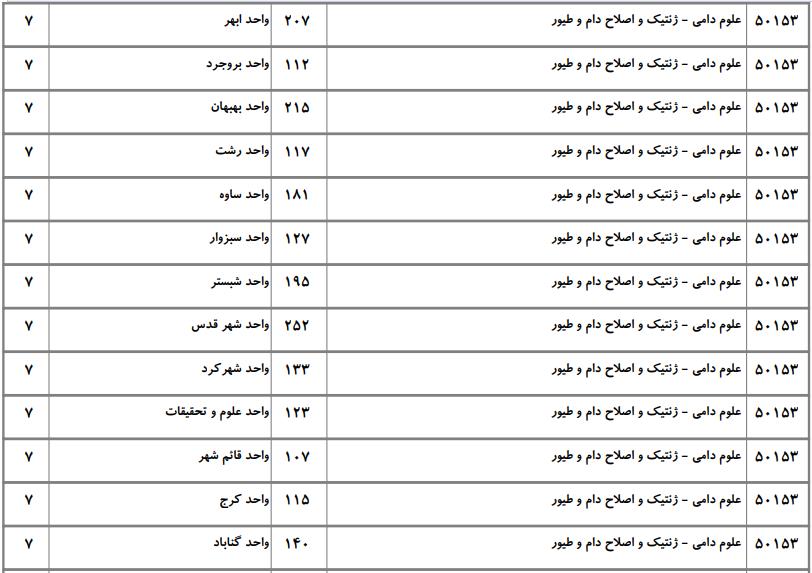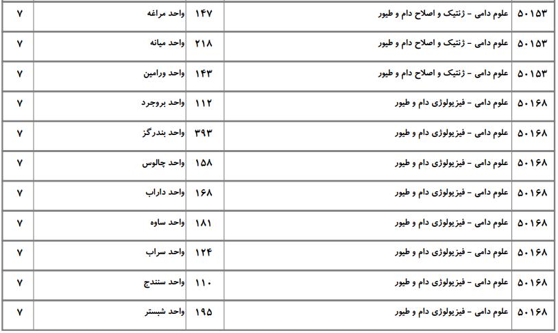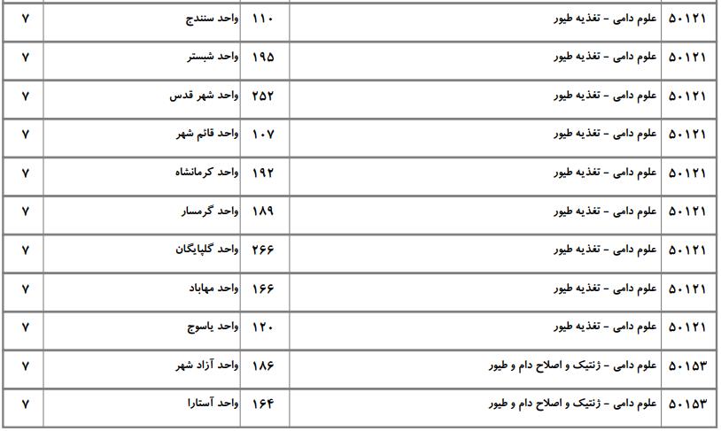فهرست واحدهای دانشگاهی دارای پذیرش و ظرفیت کارشناسی ارشد رشته علوم دام و طیور مطابق دفترچه انتخاب رشته کارشناسی ارشد دانشگاه آزاد به شرح زیر است: