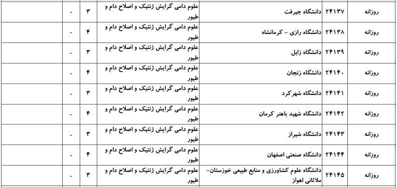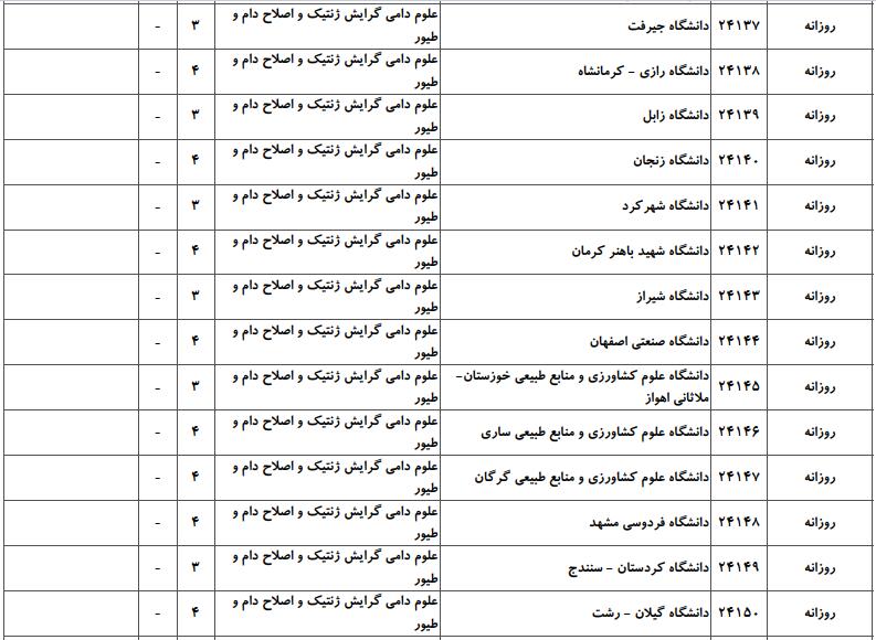 جهت اطلاع داوطلبان گرامی آزمون کارشناسی ارشد، در ادامه فهرست دانشگاههای دولتی دارای پذیرش و ظرفیت پذیرش گرایشهای مختلف کارشناسی ارشد رشته علوم دام و طیور ارائه شده است: