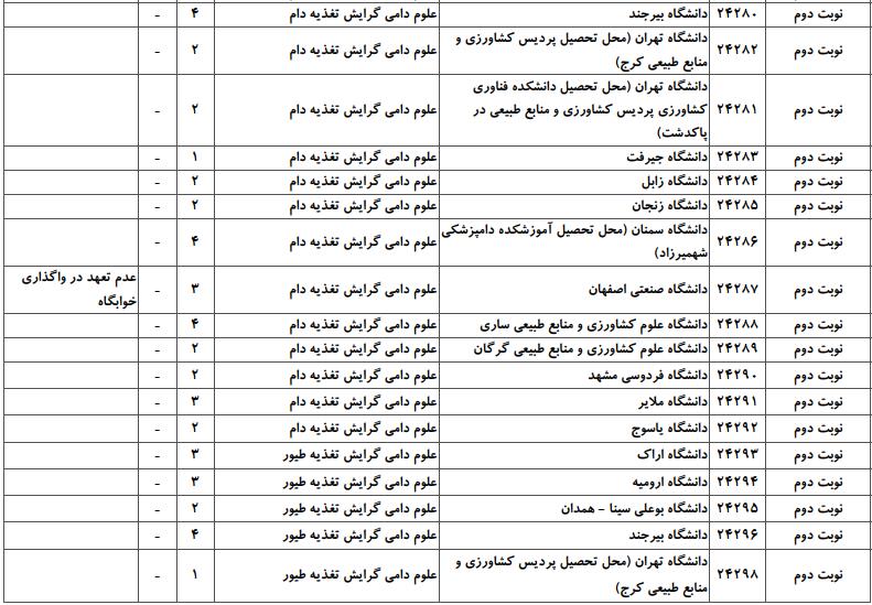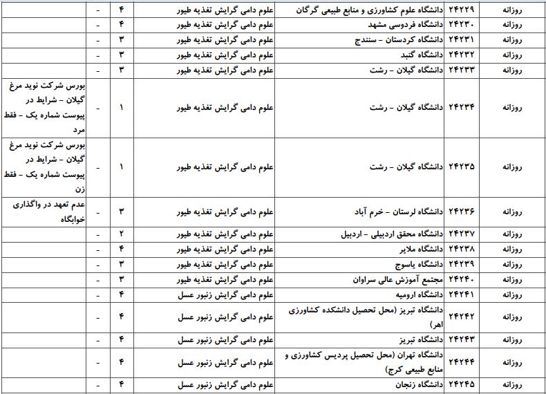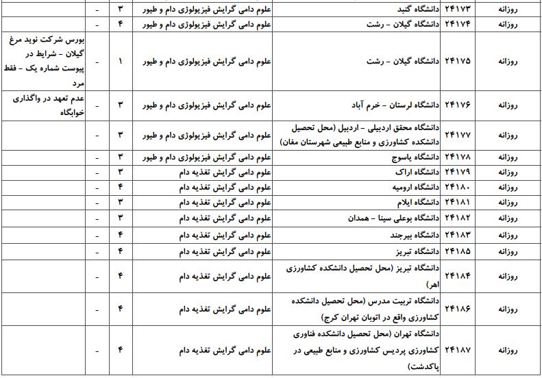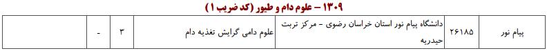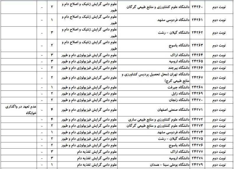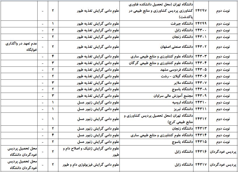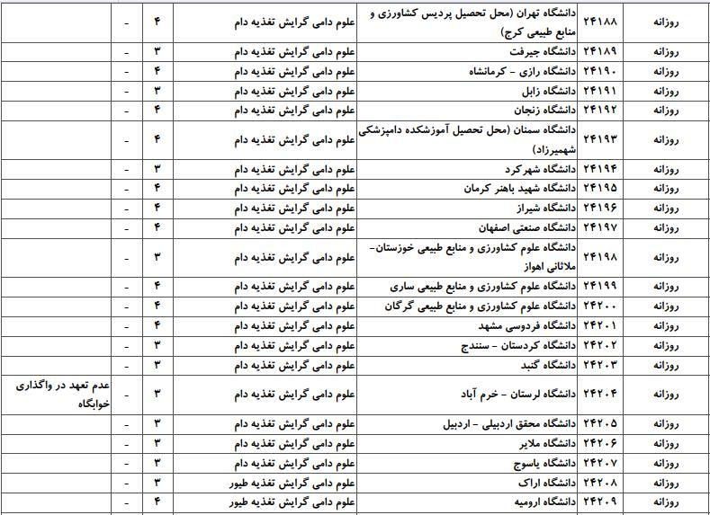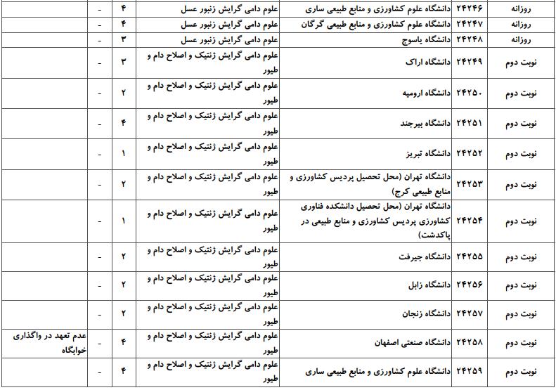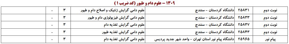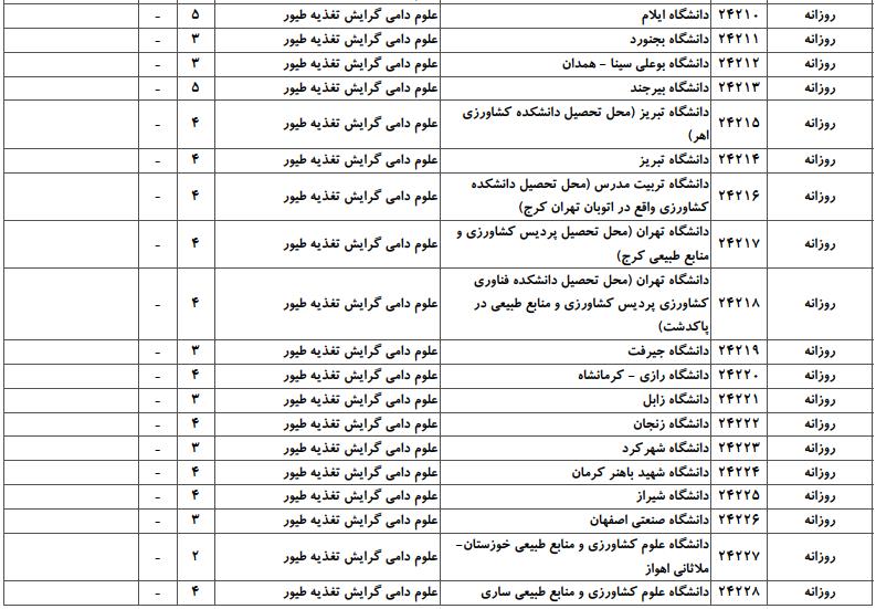ظرفیت کنکور کارشناسی ارشد رشته علوم دام و طیور (کد ۱۳۰۹)