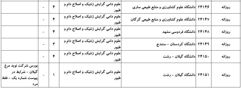ظرفیت پذیرش کارشناسی ارشد رشته علوم دام و طیور در دانشگاههای سراسری