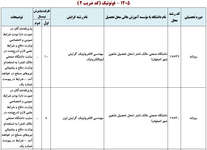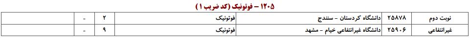ظرفیت کنکور کارشناسی ارشد رشته فوتونیک (کد ۱۲۰۵)