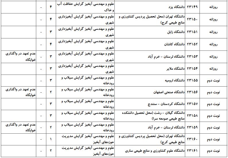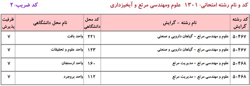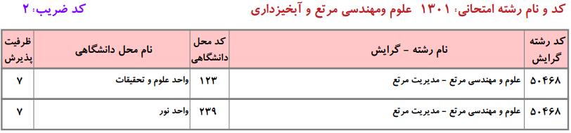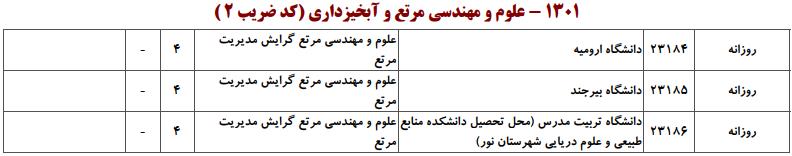 ظرفیت کنکور کارشناسی ارشد رشته علوم و مهندسی مرتع و آبخیزداری (کد ۱۳۰۱)