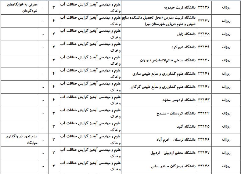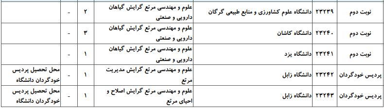 ظرفیت پذیرش کارشناسی ارشد رشته علوم و مهندسی مرتع و آبخیزداری در دانشگاههای سراسری