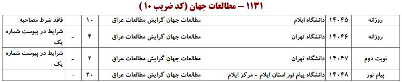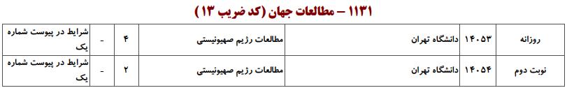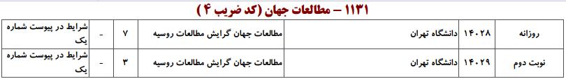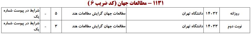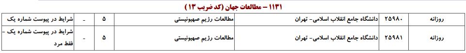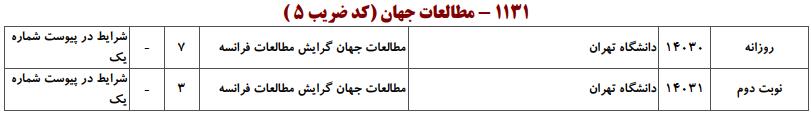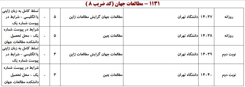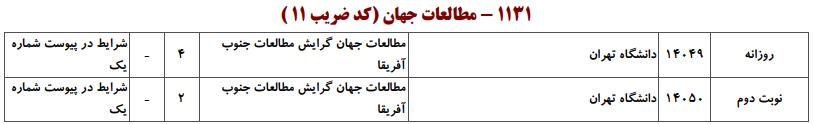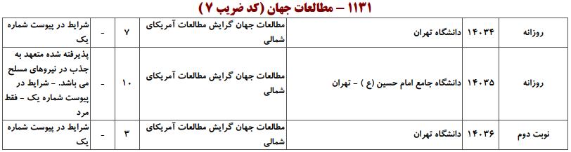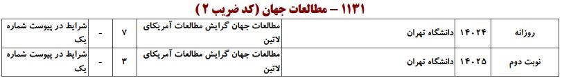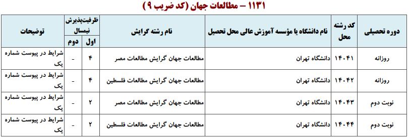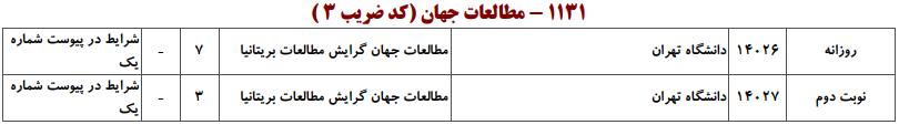 ظرفیت کنکور کارشناسی ارشد رشته مطالعات جهان (کد ۱۱۳۱)