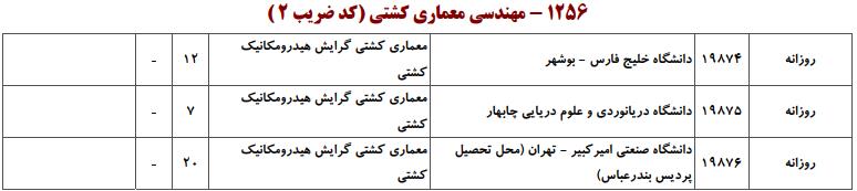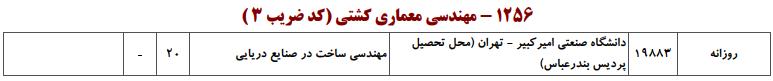 ظرفیت کنکور کارشناسی ارشد رشته مهندسی معماری کشتی (کد ۱۲۵۶)