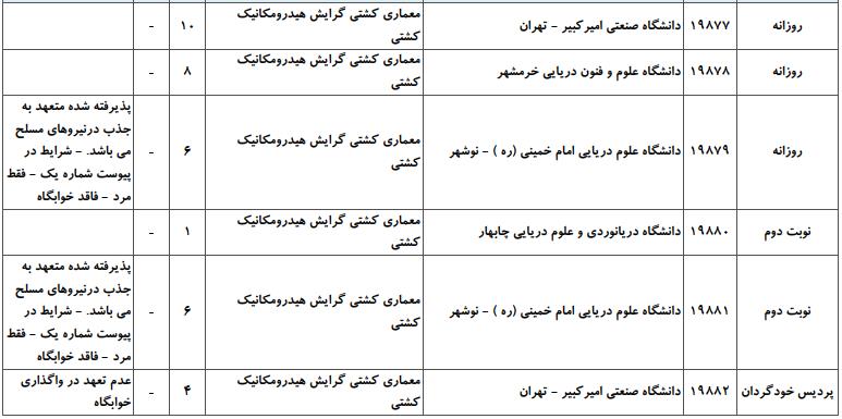 ظرفیت پذیرش کارشناسی ارشد رشته مهندسی معماری کشتی در دانشگاه های سراسری