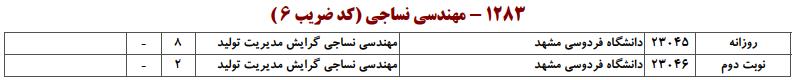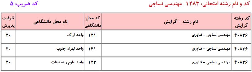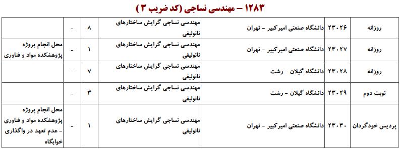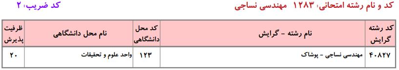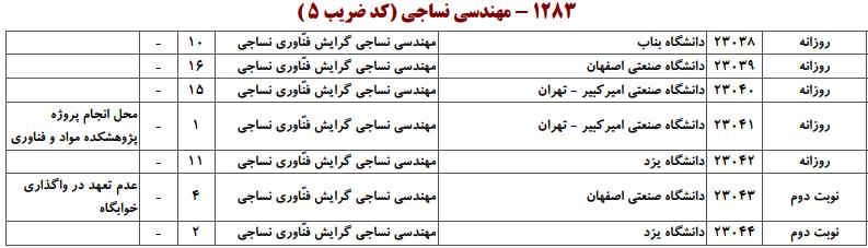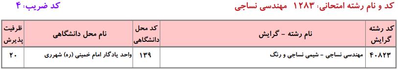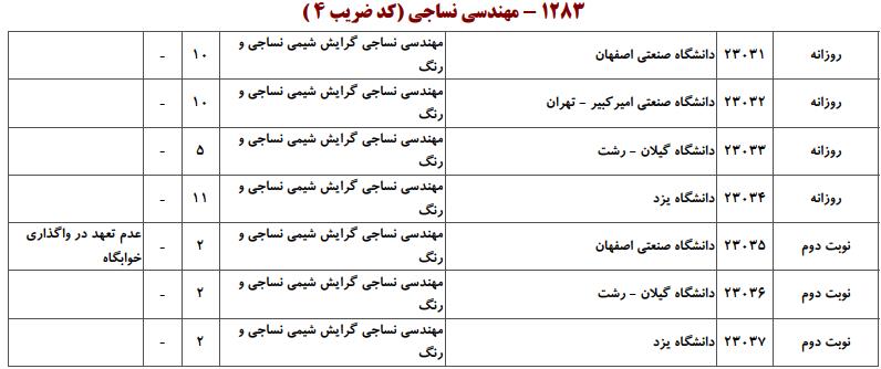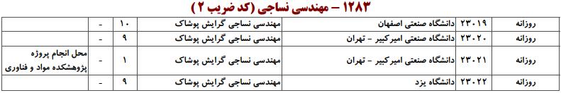 ظرفیت کنکور کارشناسی ارشد رشته مهندسی نساجی (کد ۱۲۸۳)