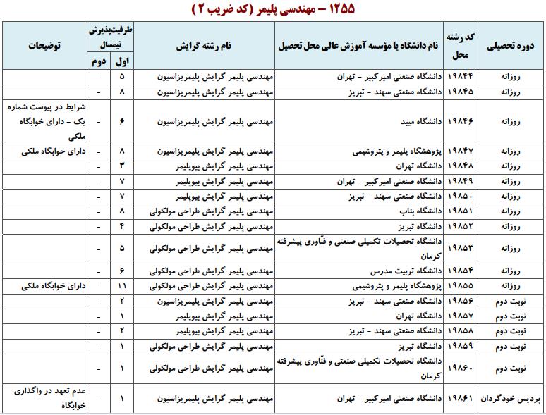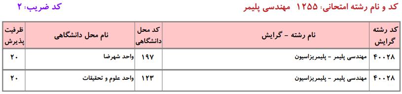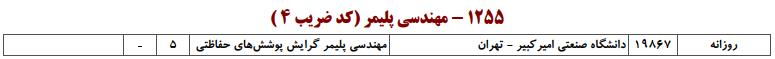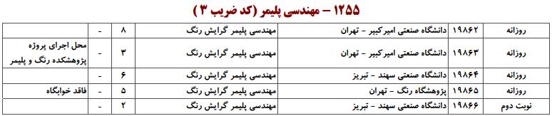 ظرفیت کنکور کارشناسی ارشد رشته مهندسی پلیمر (کد ۱۲۵۵)