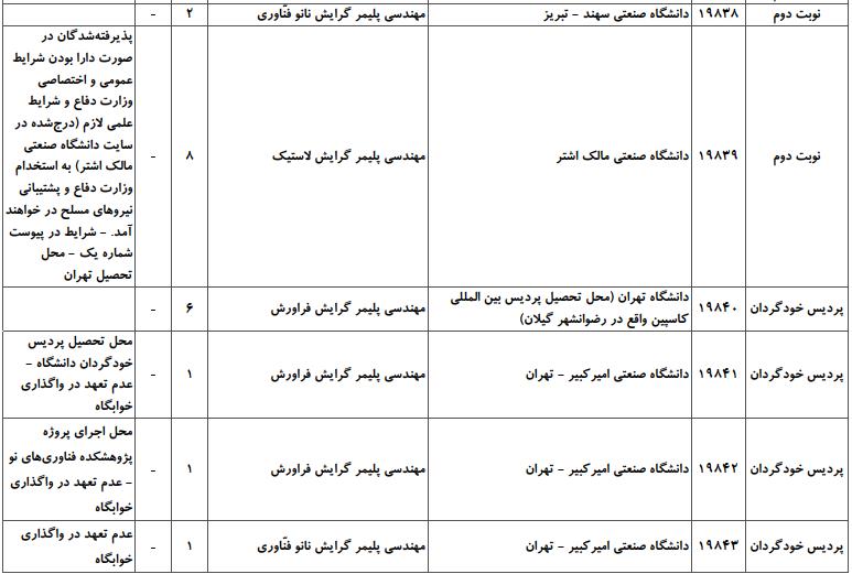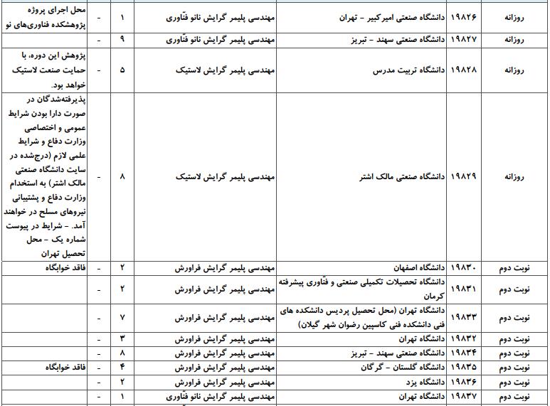 ظرفیت پذیرش کارشناسی ارشد رشته مهندسی پلیمر در دانشگاه های سراسری