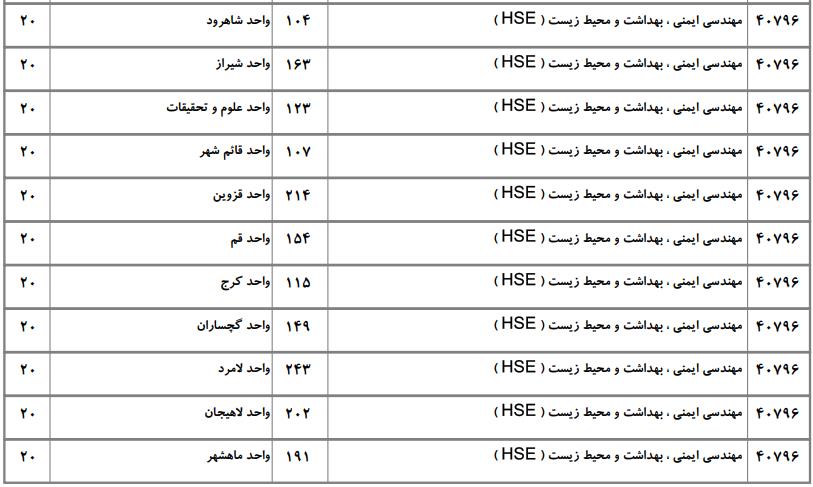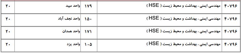 فهرست واحدهای دانشگاهی دارای پذیرش و ظرفیت کارشناسی ارشد رشته مهندسی بهداشت، ایمنی و محیط زیست (HSE) مطابق دفترچه انتخاب رشته کارشناسی ارشد دانشگاه آزاد به شرح زیر است: