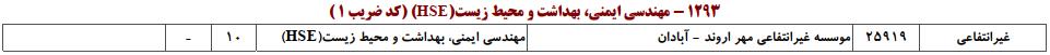 ی سوال داشتم توی دفترچه ارشد ۹۹ اصلا کد ۱۲۹۳ ایمنی نیست و کلا رشته ای با عنوان مهندسی ایمنی بهداشت و محیط زیست وجود نداره