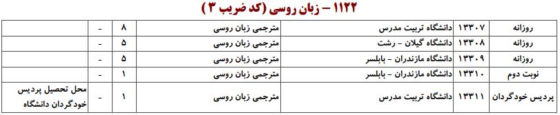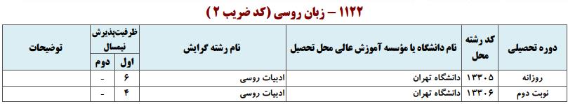 ظرفیت کنکور کارشناسی ارشد رشته زبان روسی (کد ۱۱۲۲)
