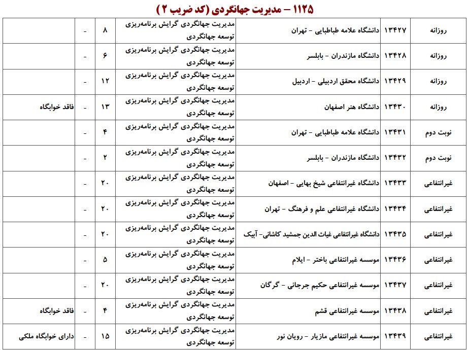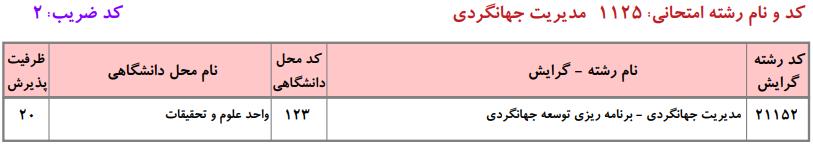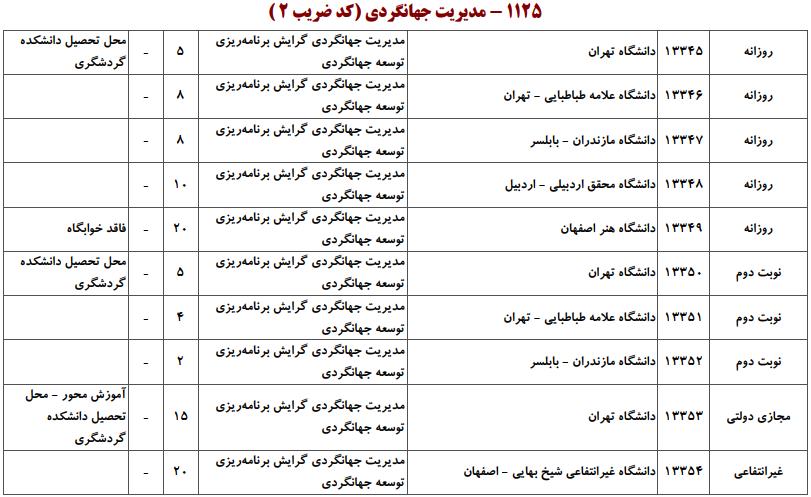 ظرفیت کنکور کارشناسی ارشد رشته مدیریت جهانگردی (کد ۱۱۲۵)