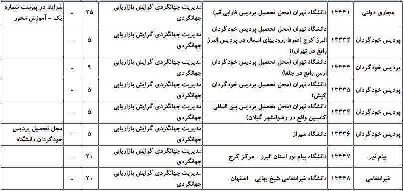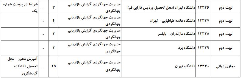 ظرفیت پذیرش کارشناسی ارشد رشته مدیریت جهانگردی در دانشگاه های سراسری