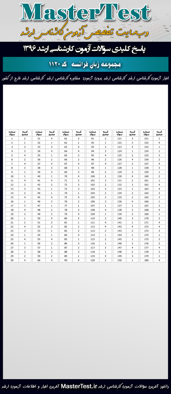 کاربران عزیز مسترتست میتوانند دفترچه سؤالات آزمون کارشناسی ارشد دانشگاههای سراسری و آزاد اردیبهشت ماه ۱۳۹۶ مجموعه زبان فرانسه شامل گرایشهایِ