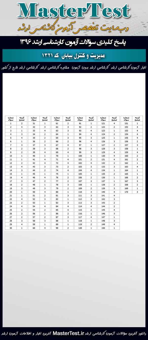 پاسخنامه ( کلید ) سؤالات کارشناسی ارشد ۹۶ رشته مدیریت و کنترل بیابان