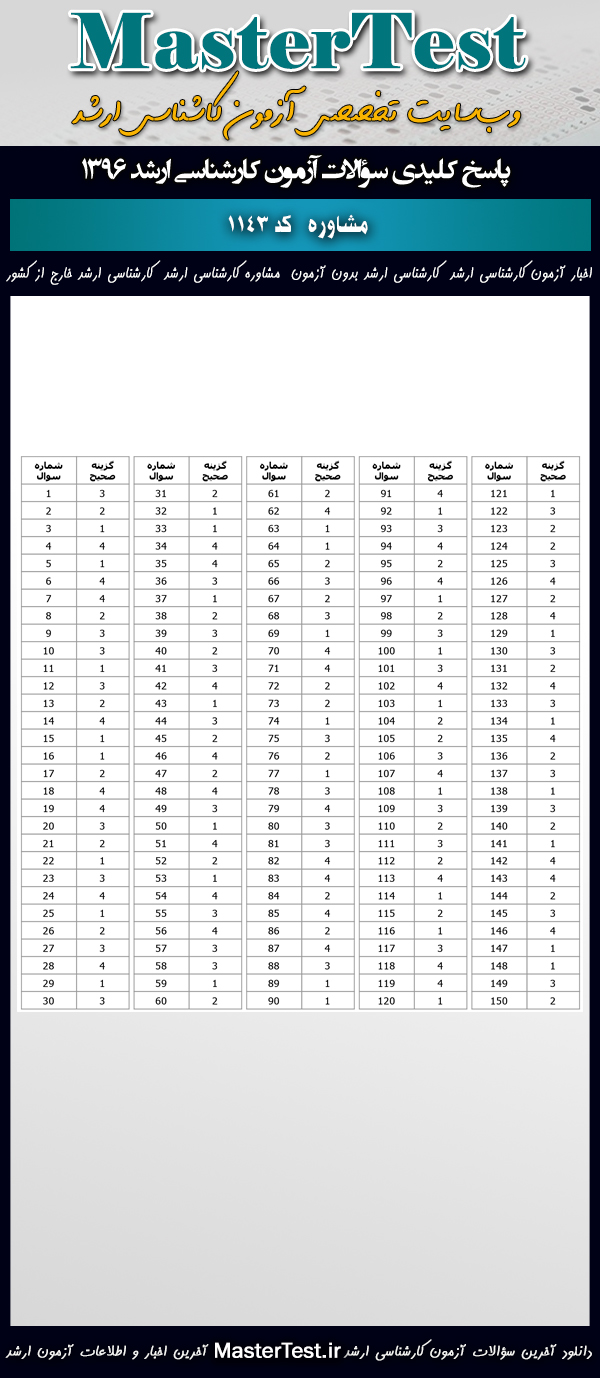 کاربران عزیز مسترتست میتوانند دفترچه سؤالات آزمون کارشناسی ارشد دانشگاههای سراسری و آزاد اردیبهشت ماه ۱۳۹۶ رشته مشاوره شامل گرایشهایِ