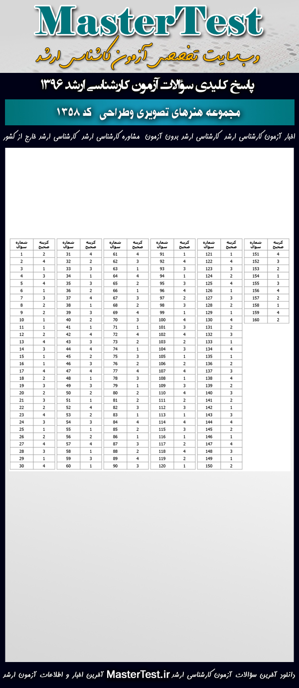 کاربران عزیز مسترتست میتوانند دفترچه سؤالات آزمون کارشناسی ارشد دانشگاههای سراسری و آزاد اردیبهشت ماه ۱۳۹۶ مجموعه هنرهای تصویری و طراحی شامل گرایشهایِ