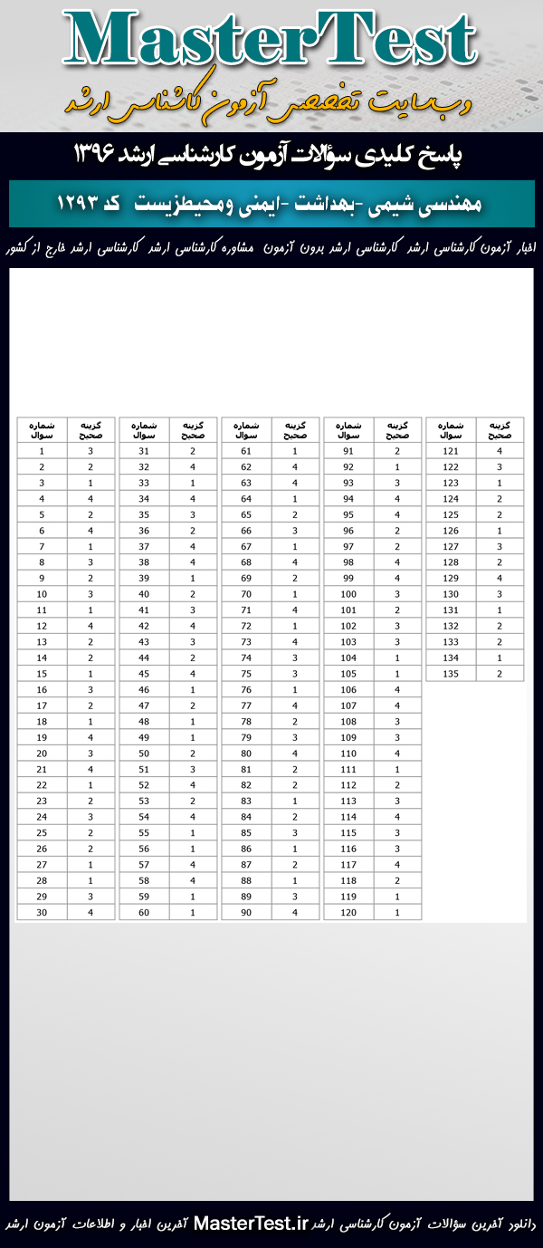 پاسخ ( کلید ) سؤالات کارشناسی ارشد ۹۶ رشته مهندسی شیمی – بهداشت، ایمنی و محیطزیست (HSE)
